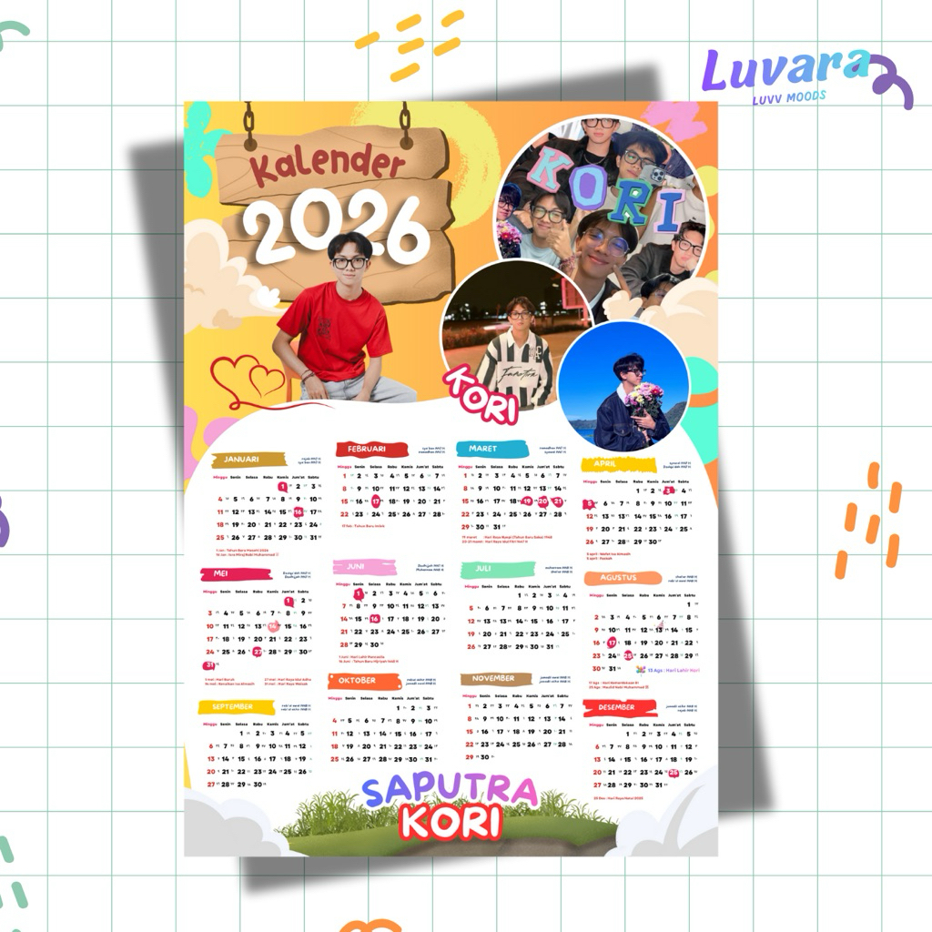 Kalender 2026 Tema Saputra Kori Ukuran A3 Bahan Stiker tinggal tempel