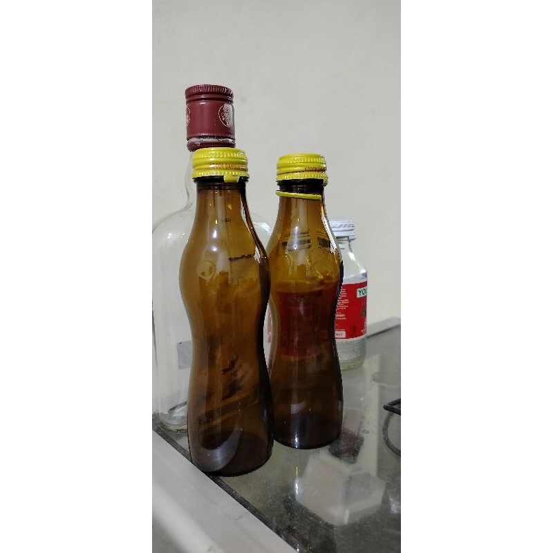 botol kaca bekas kiranti lengkap dengan tutupnya