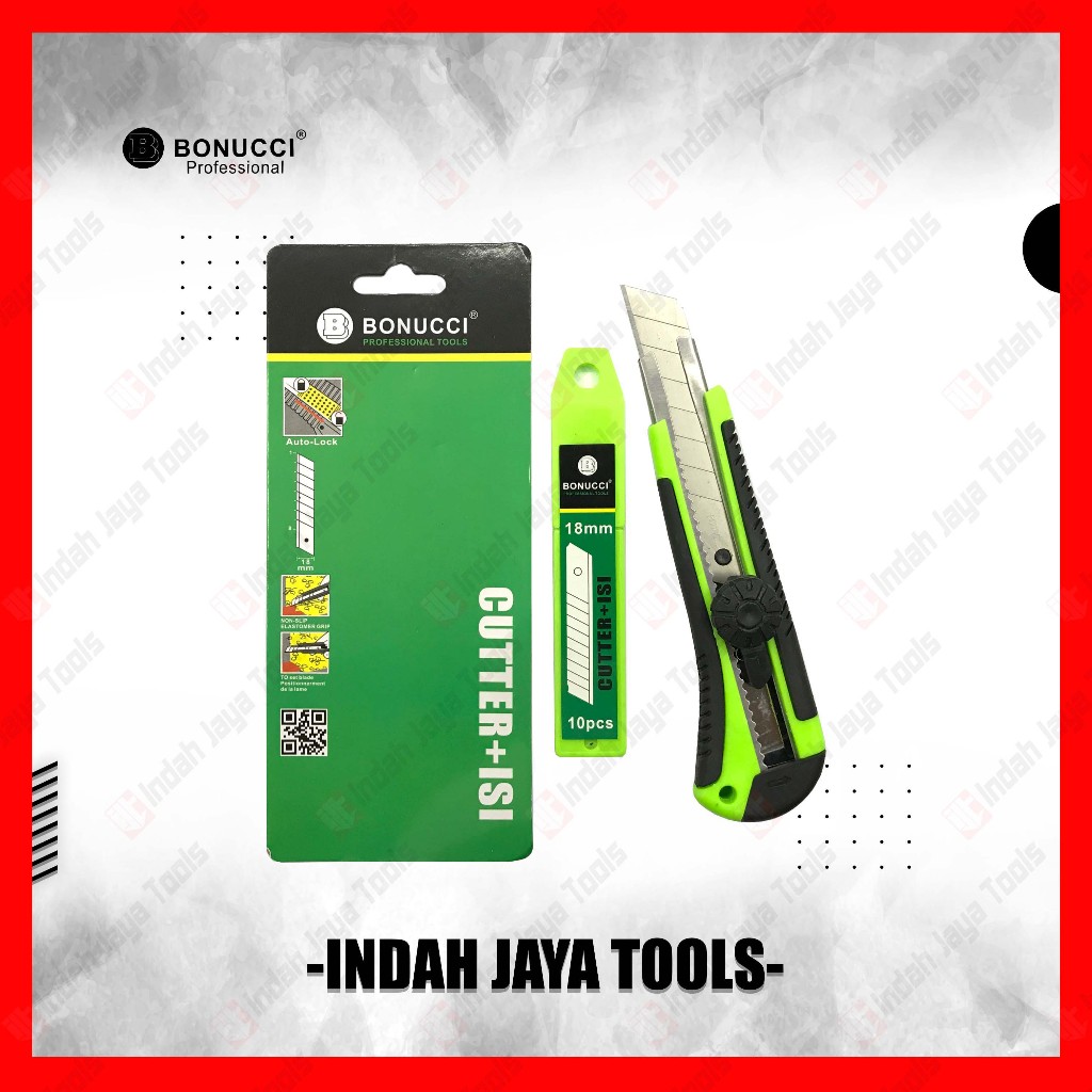BONUCCI Pisau Cutter Plastic + isi 10 Pcs - Cuter Plastik Pemotong Kertas Kater