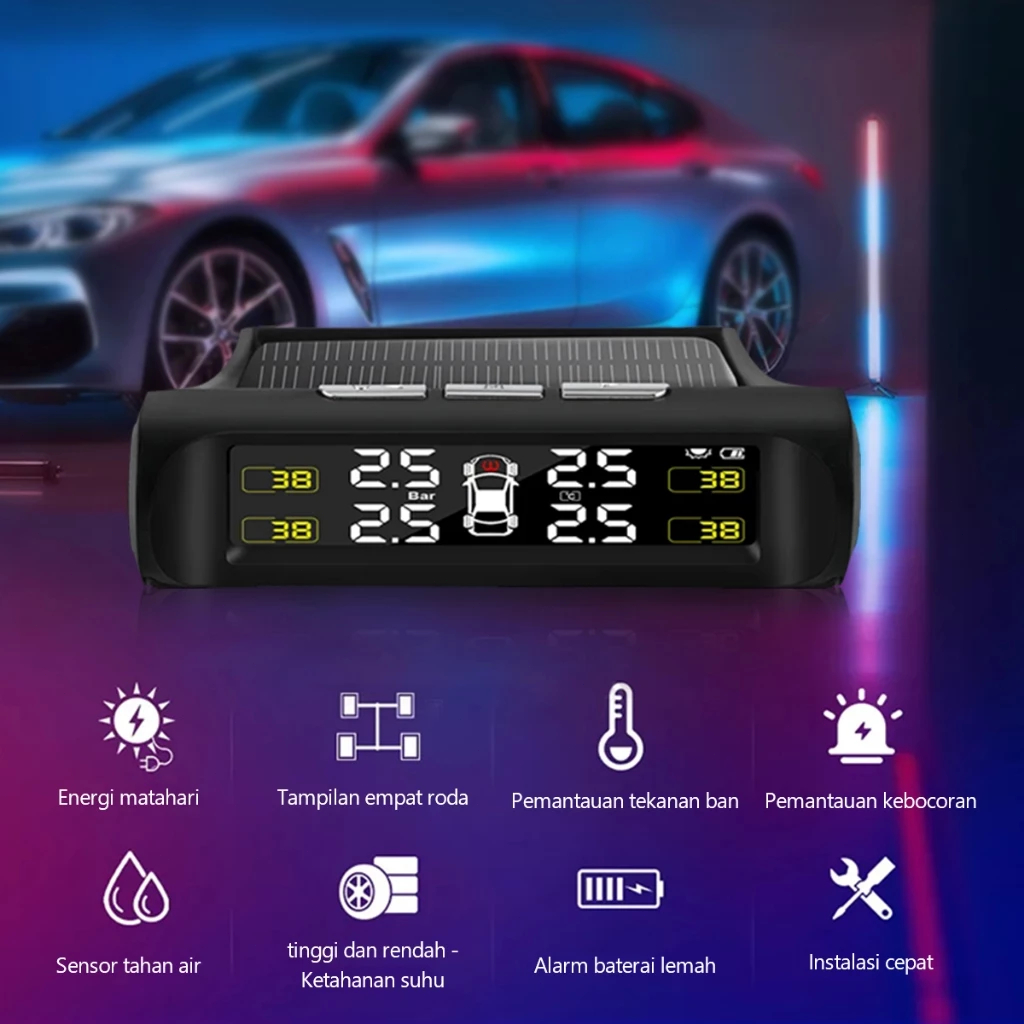 [COD] TPMS T12 Alarm Pengukur Tekanan Ban Mobil Tire Layar Monitor System LCD Solar Power pemantauan