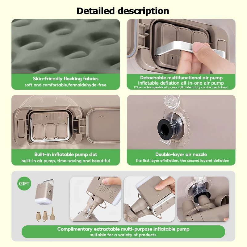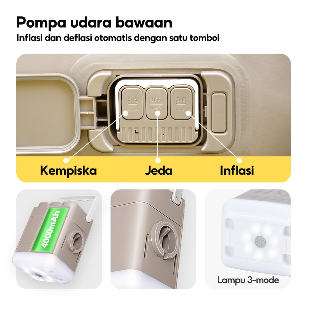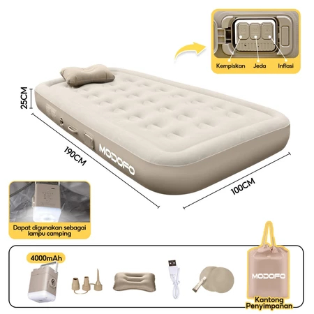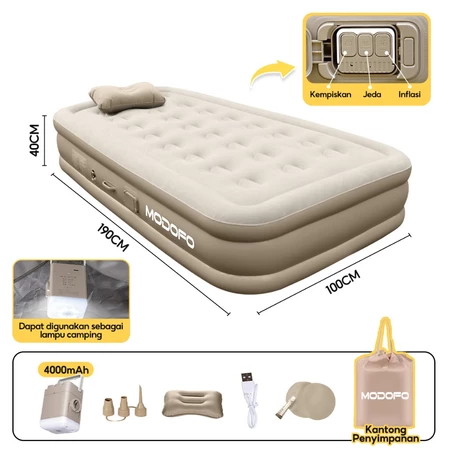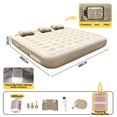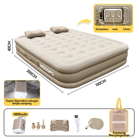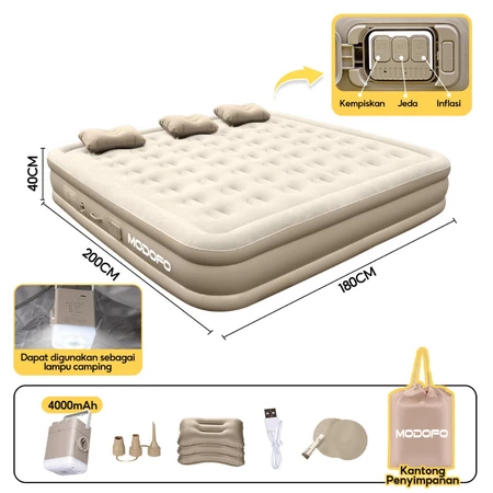 MODOFO kasur angin Tempat Tidur Tiup Otomatis untuk Rumah Ganda Kasur Udara Luar Ruangan Dapat Dilipat Portabel Inflatable Bed Pompa Tiup Double Air Bed
