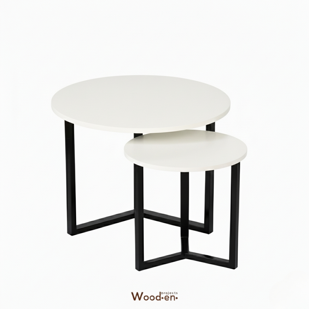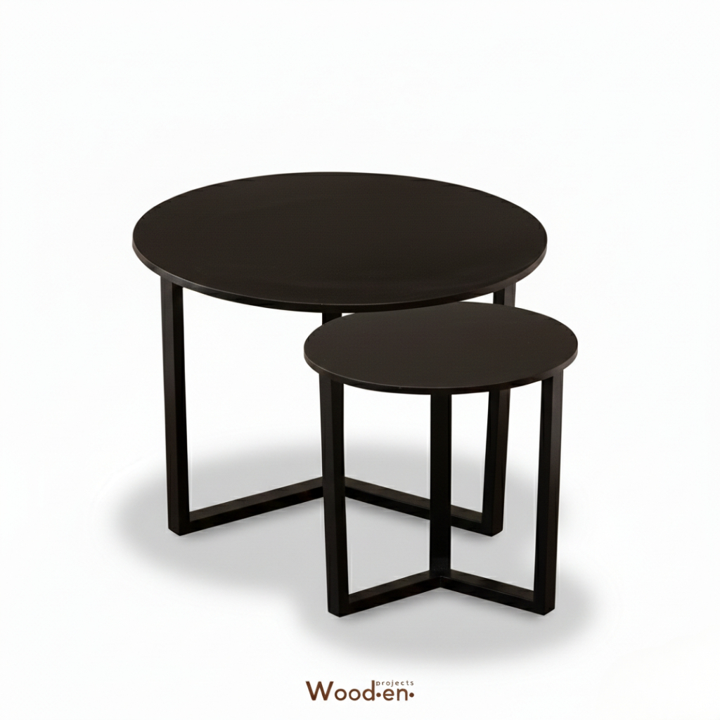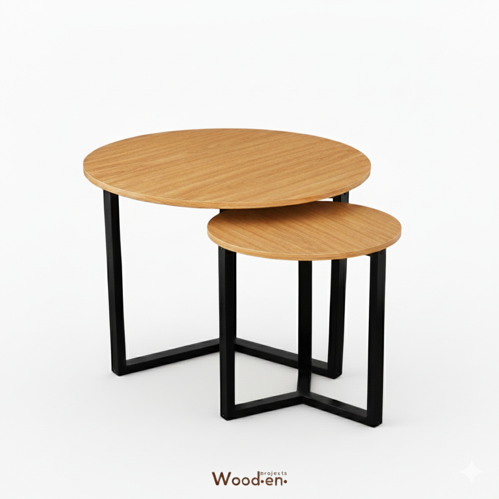 Wooden Projects Meja Bulat Sudut Ruang Tamu Keluarga Rumah Kayu Minimalis Aesthetic -MJL67 SET