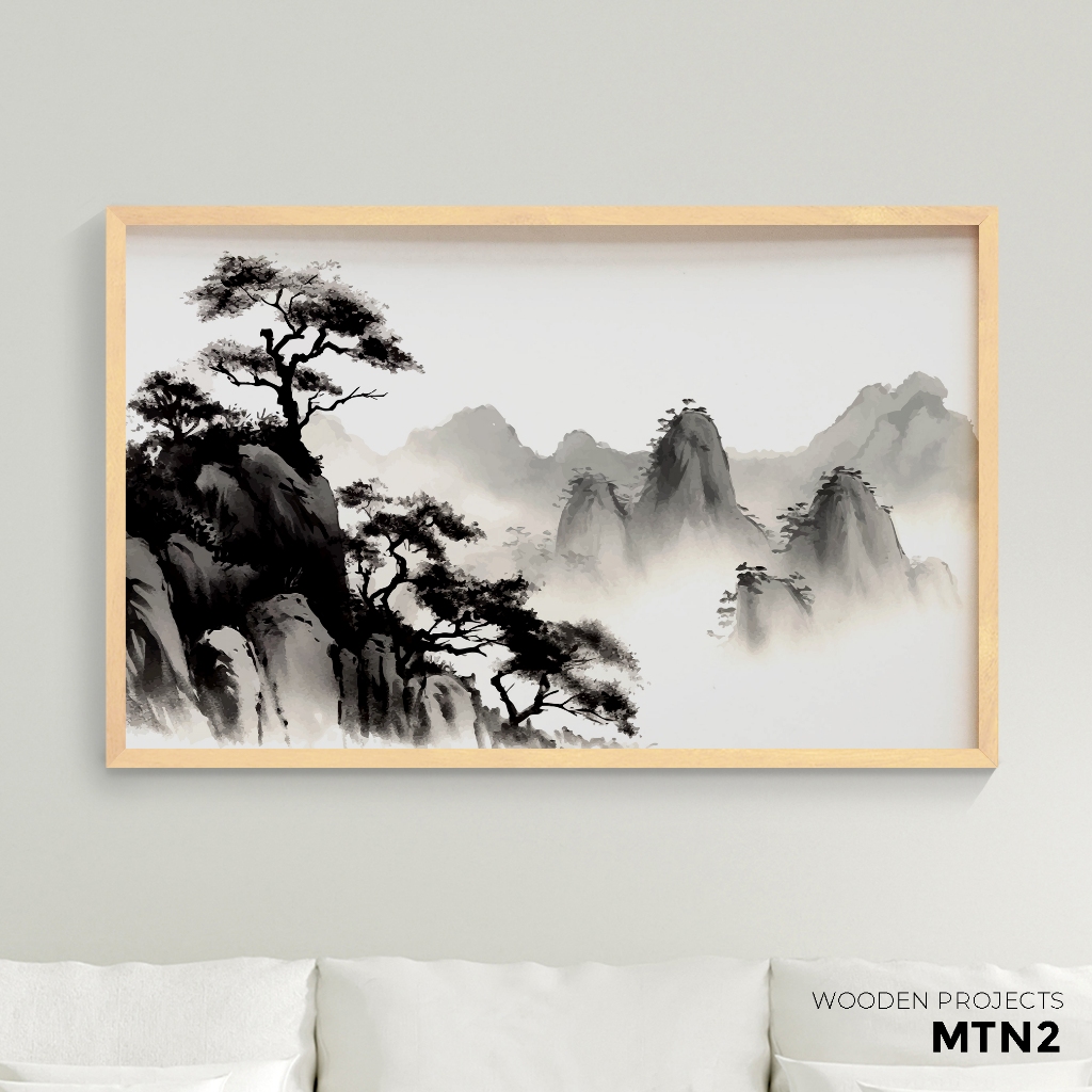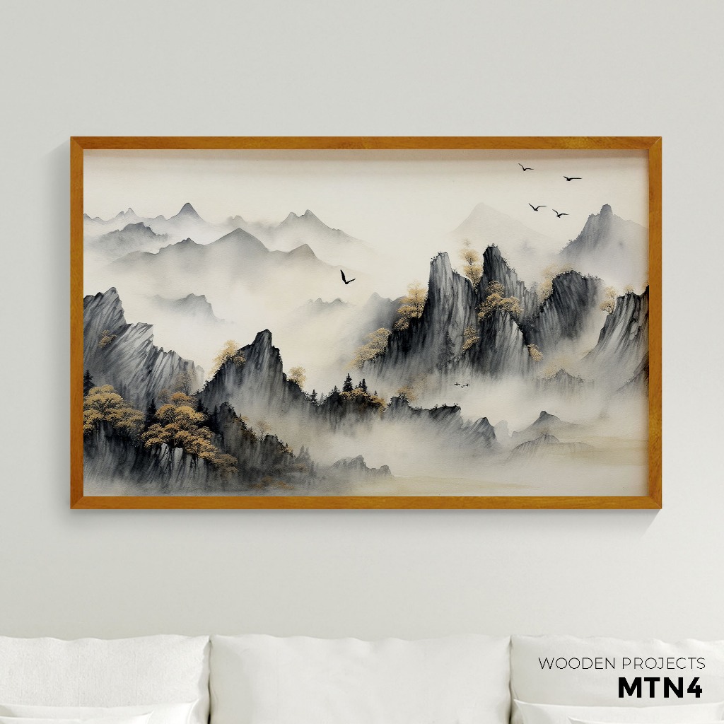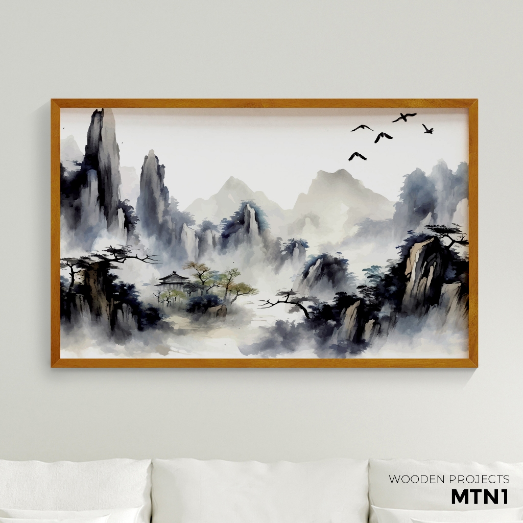 Wooden Projects Hiasan Dinding Frame Kayu Premium Wall Decor Aesthetic Tema Pegunungan Mountain- MTN