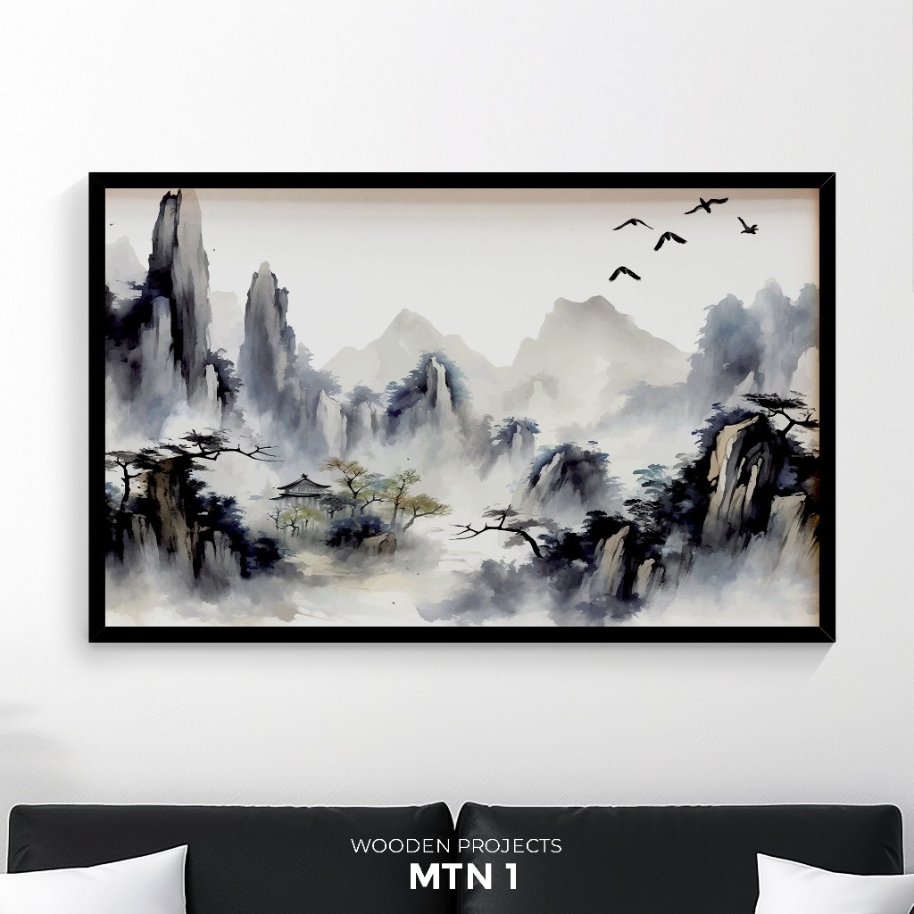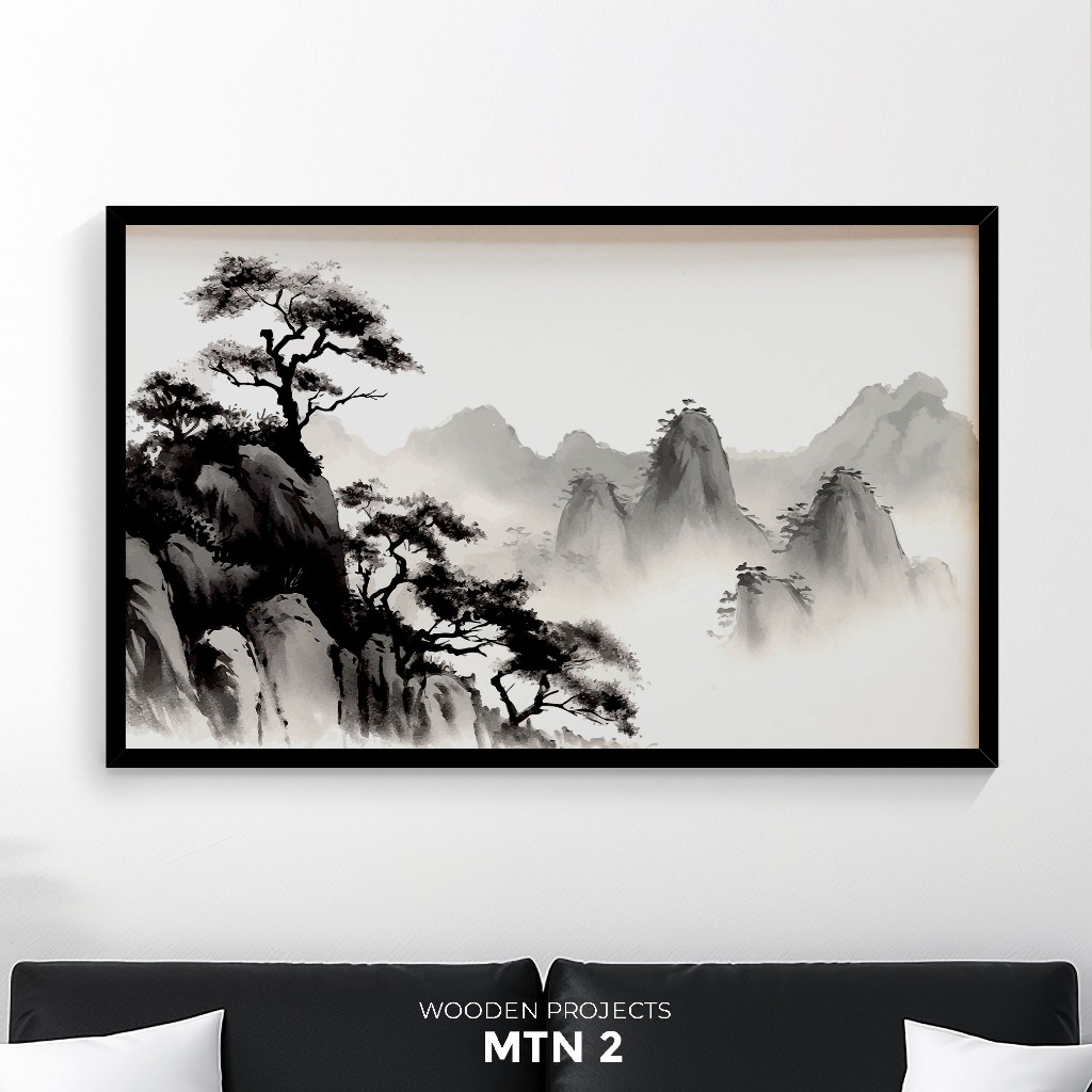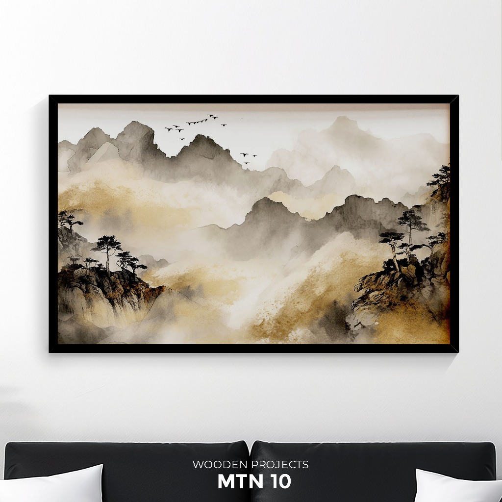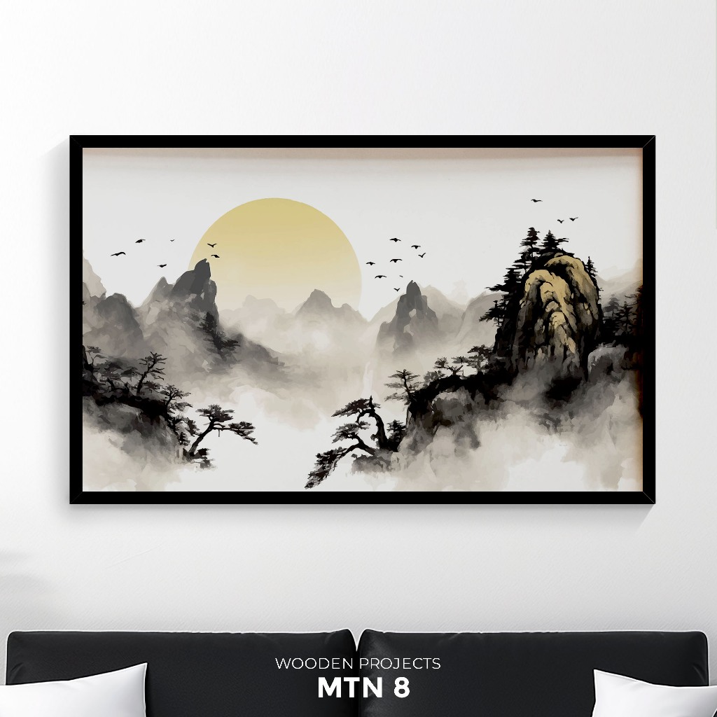 Wooden Projects Hiasan Dinding Frame Kayu Premium Wall Decor Aesthetic Tema Pegunungan Mountain- MTN