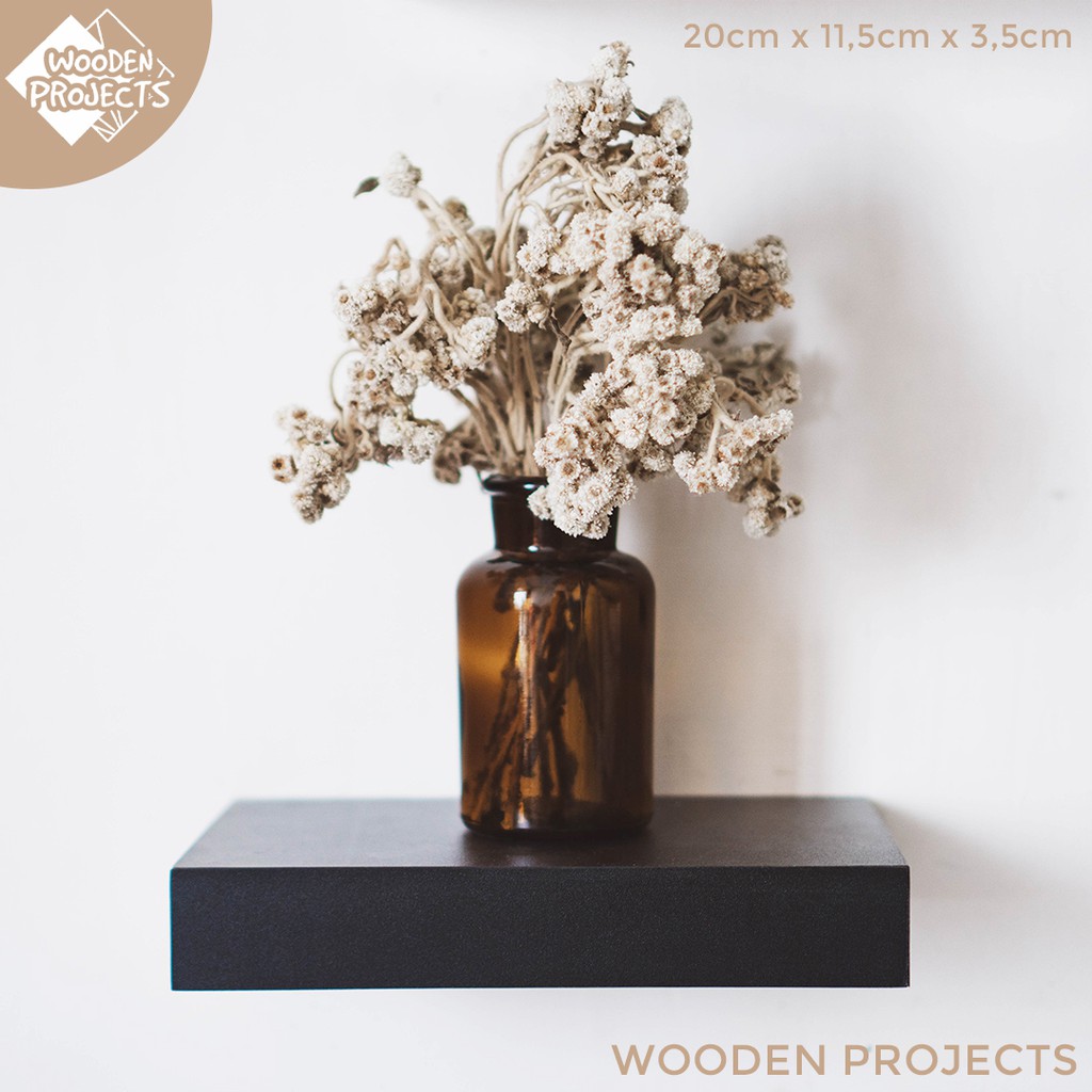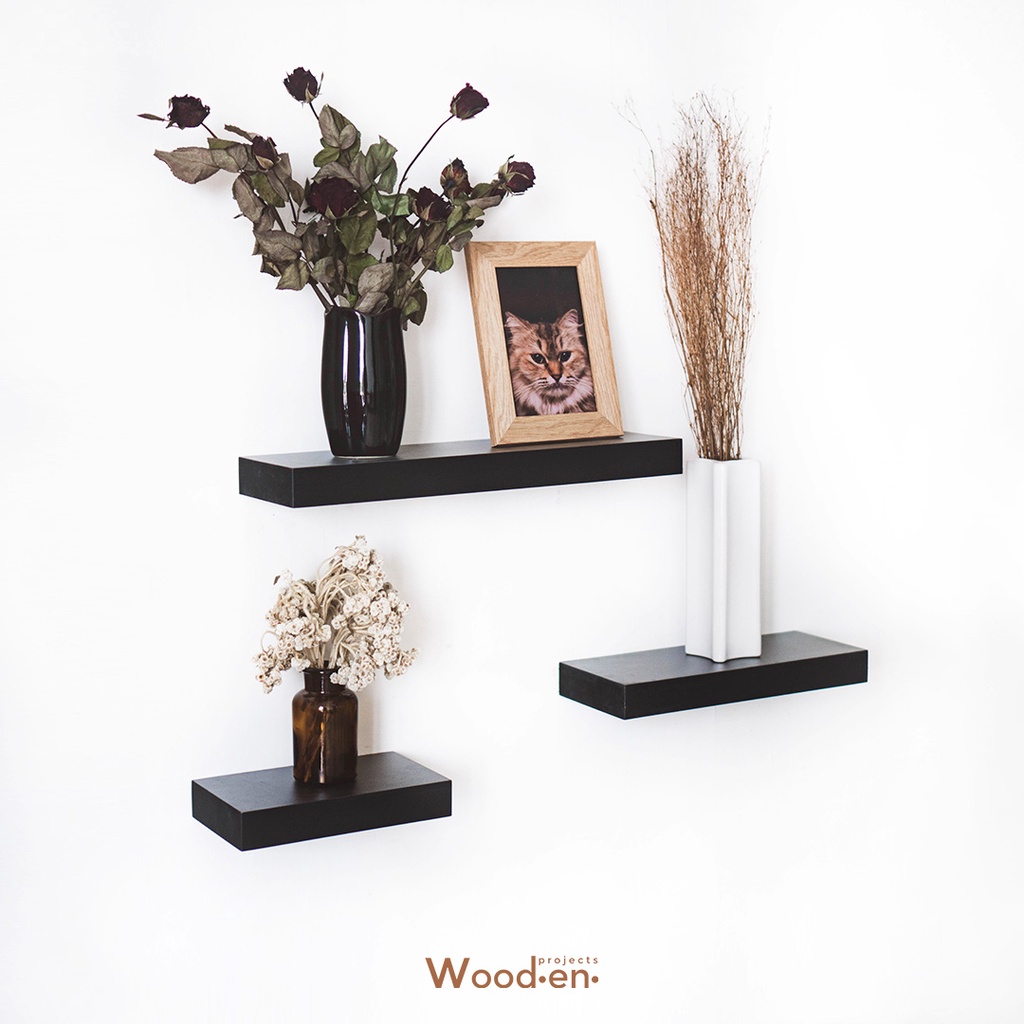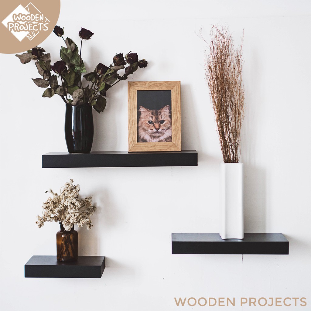 Wooden Projects Rak Dinding Minimalis Melayang Tempel Ambalan Organizer Rumah Hiasan Kayu Dekorasi Kamar Storage Hitam 1 SET