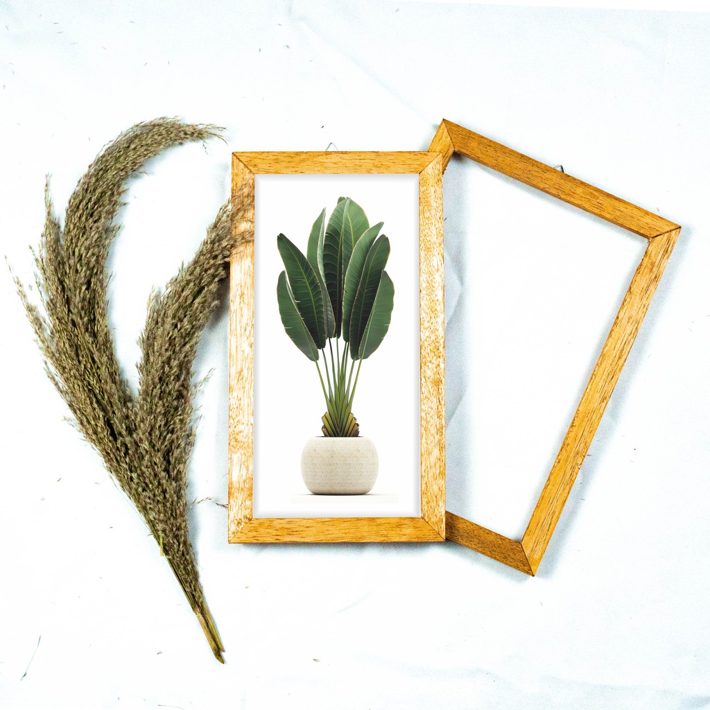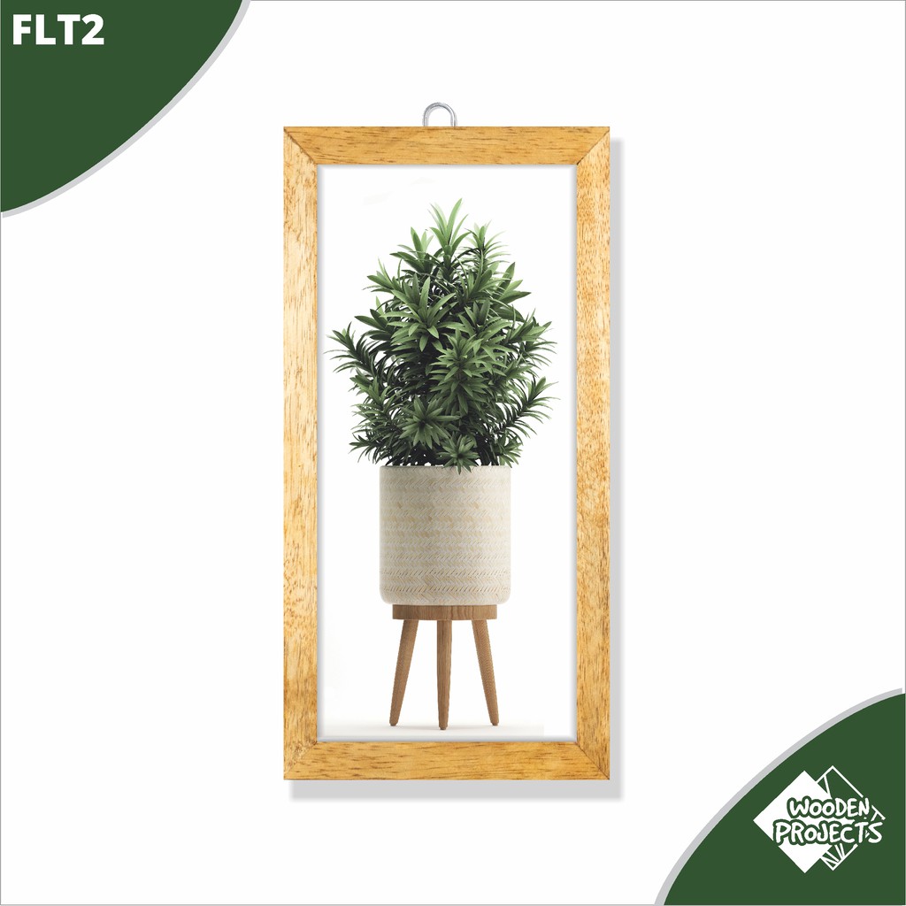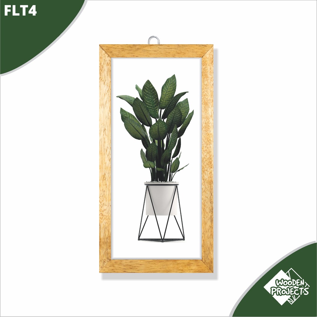 Wooden Projects Pajangan Hiasan dinding Frame Dekorasi Rumah monstera bunga bunga pot hijau - FLT