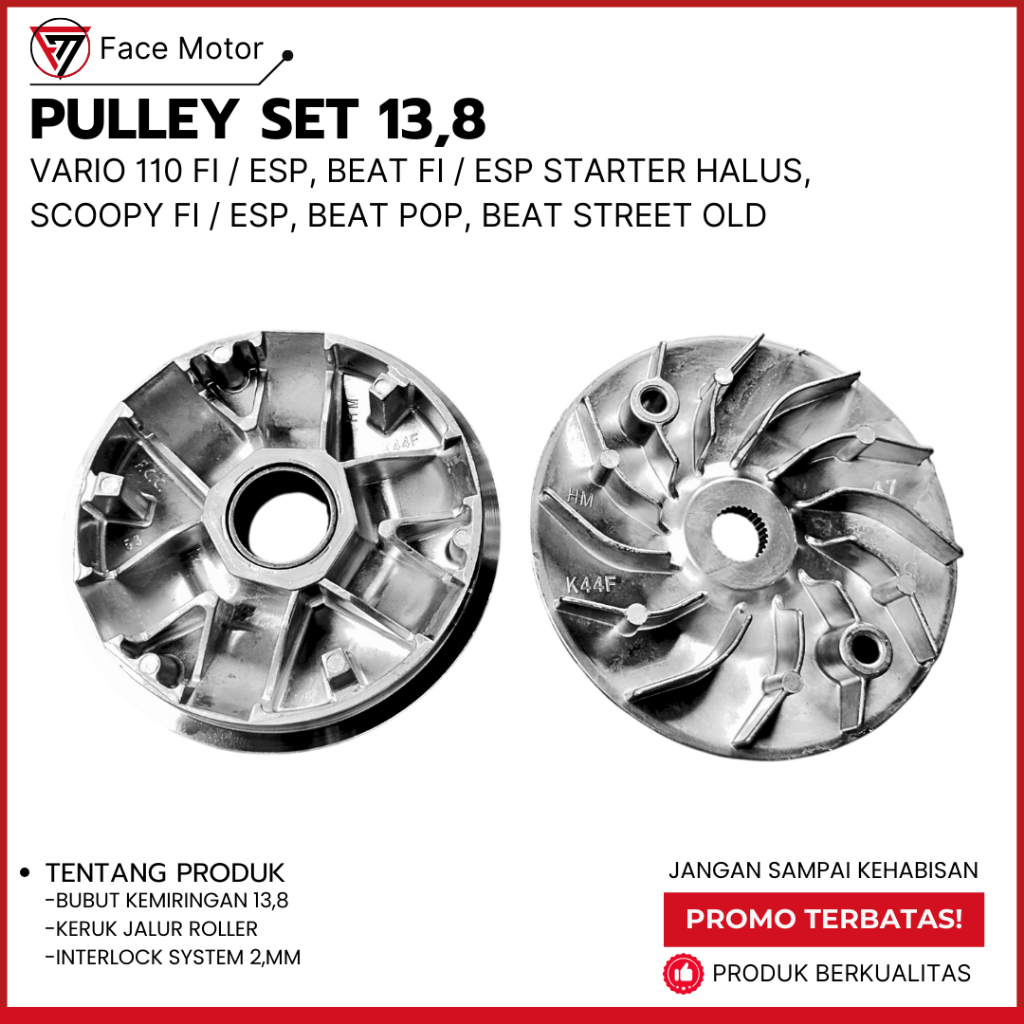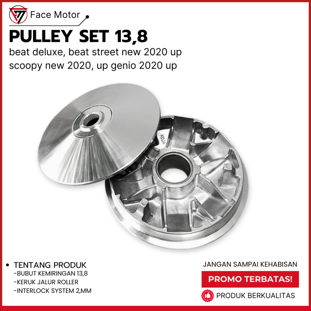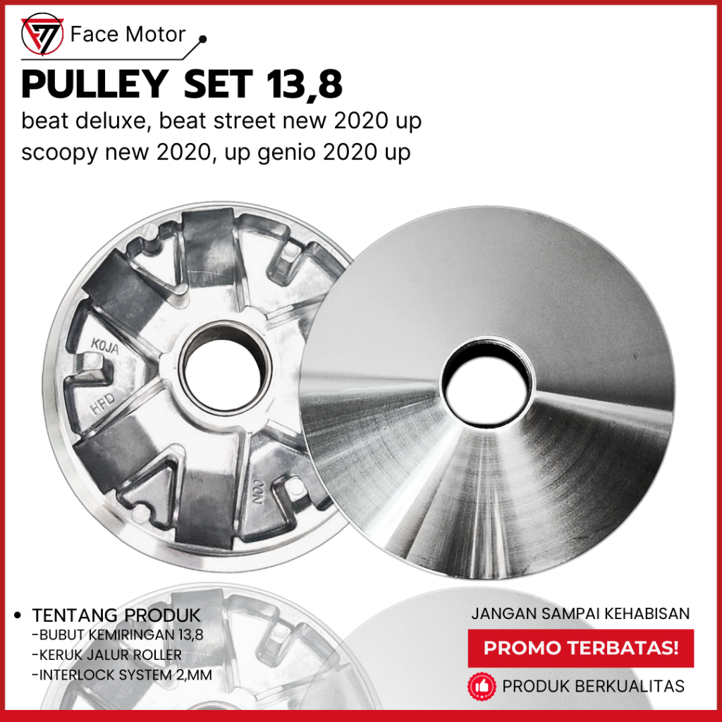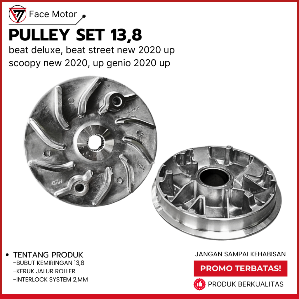 Pulley 13,8 Beat Deluxe Genio Scoopy K2F Rumah roller + Kipas Cvt Beat 2021 UP Pulley Bubut Honda
