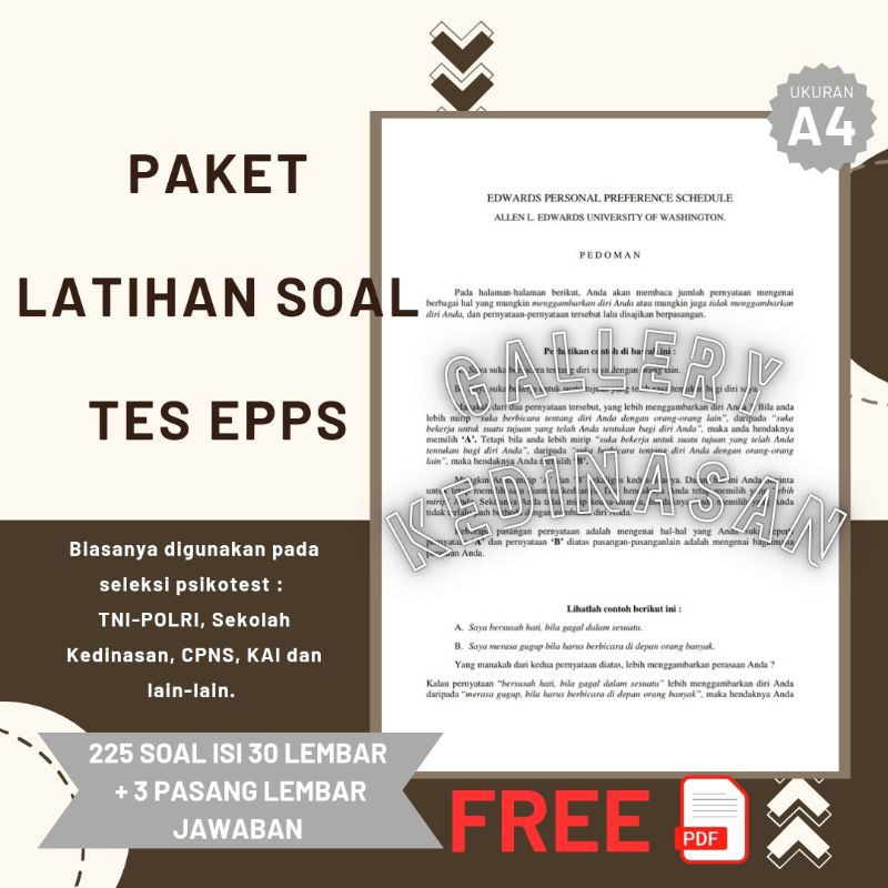 PAKET LATIHAN SOAL TES EPPS EDWARDS PERSONAL PREFERENCE SCHEDULE PSIKOTES EPPS