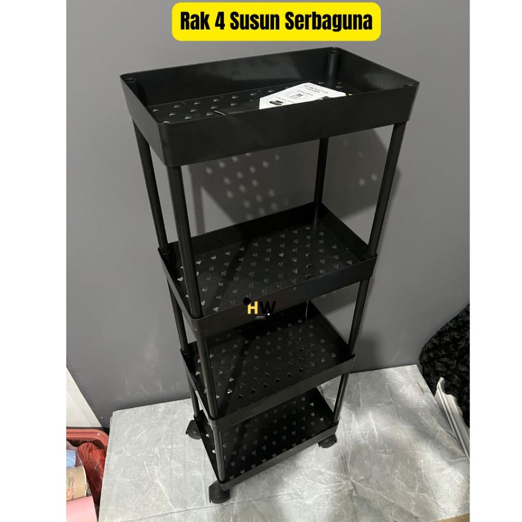 Rak Persegi Dapur Plastik 4 Susun /Rak troli plastik rak toilet rak kamar mandi rak dapur serbaguna dengan roda Rak Bumbu Rak Susun Kosmetik
