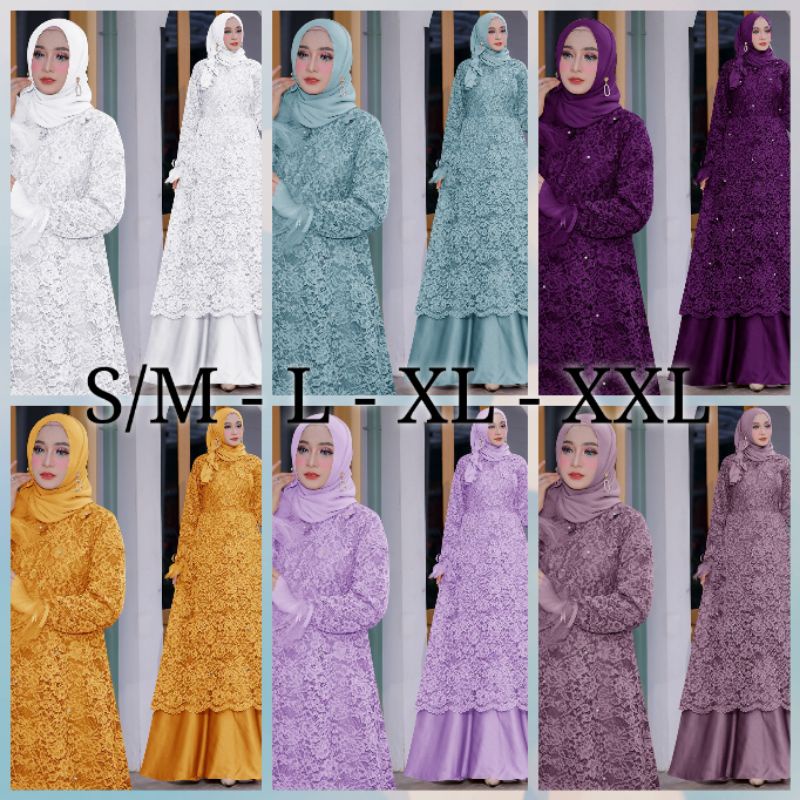 BAJU GAMIS DRESS PESTA NIKAH KONDANGAN SERAGAMAN BRIDESMAID UMROH NAIK HAJI WANITA MUSLIM FULL BRUKAT BROKAT TILE REMAJA DEWASA IMPORT PREMIUM UKURAN S M L XL XXL JUMBO BELOVA DRESS WARNA POLOS KUNING MUSTARD KUBUS KUNYIT