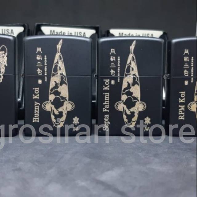 Zippo ikan koi fish custom logo tulisan nama ukir grafir