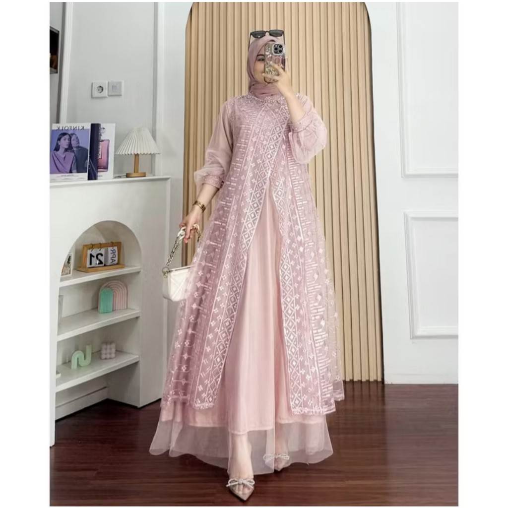 TERBARU KAYLA DRESS Gamis Muslimah Terbaru 2026 Bahan Ceruty Premium Dengan Payet Mutiara Mewah