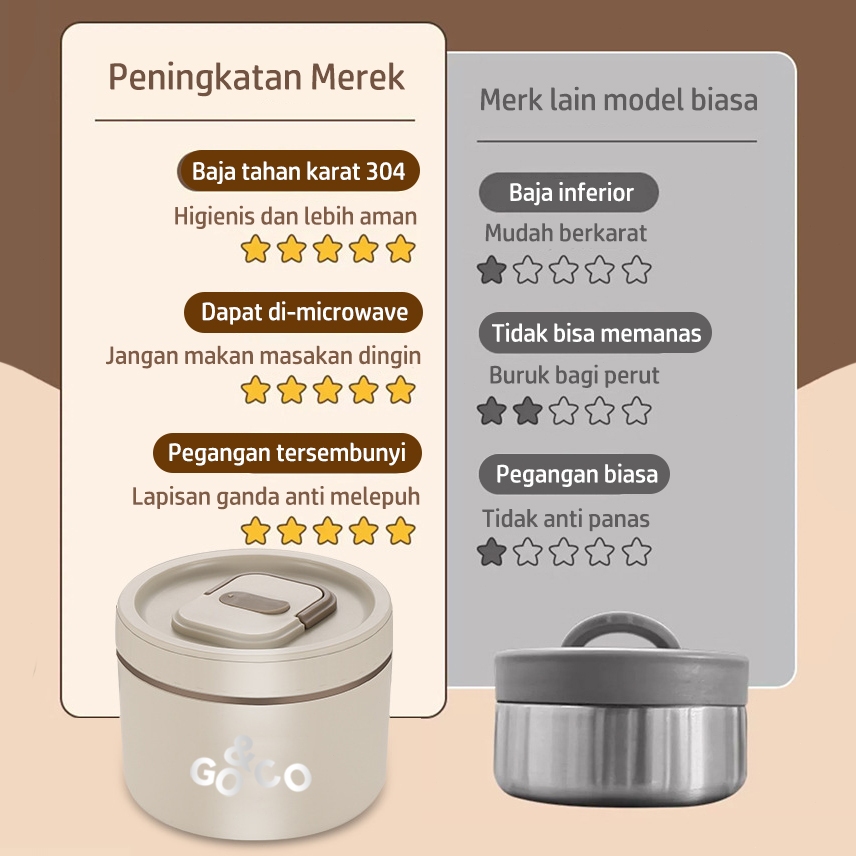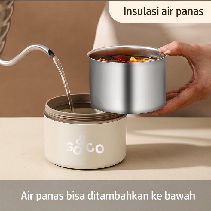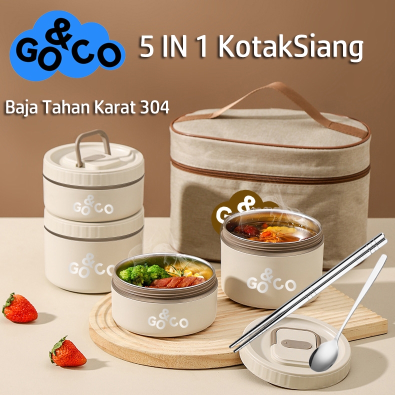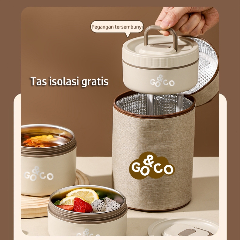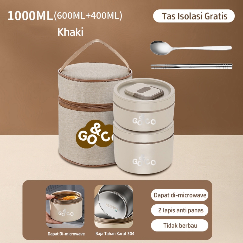 GO&CO Kotak Makan Siang Bento Portabel Tahan Bocor Stainless Lunch Box Container Sup Stainless Steel