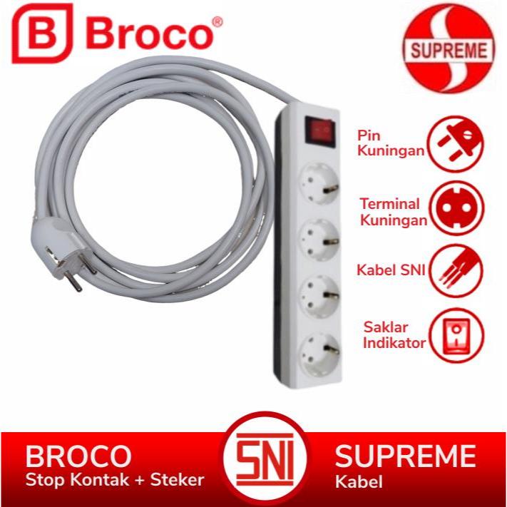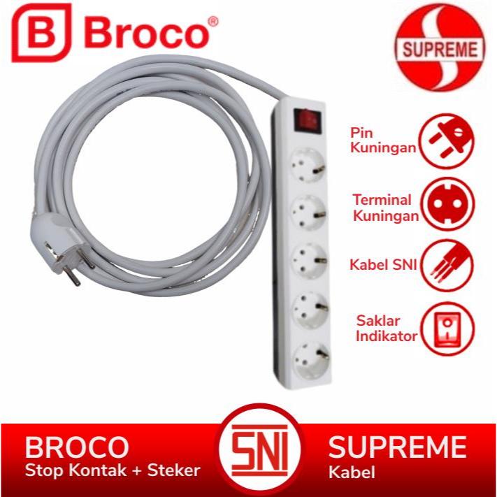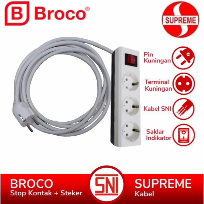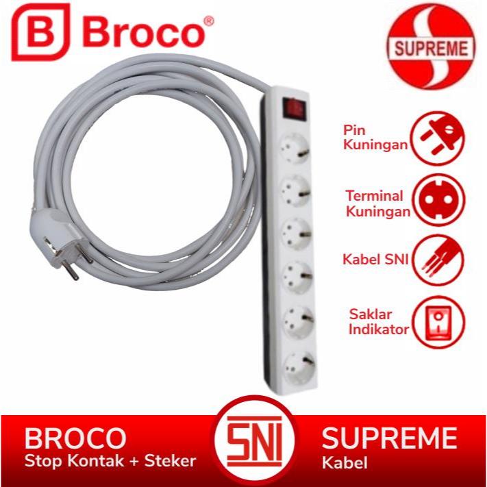 BROCO Stop Kontak 3 - 4 - 5 - 6 Lubang Extension Kabel Putih SUPREME 1 - 10 Meter Saklar Lampu Indikator SNI