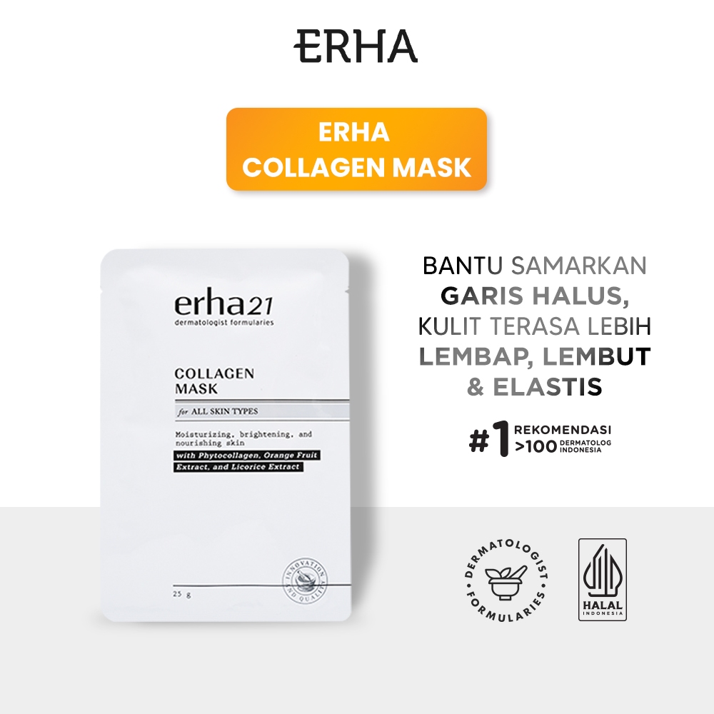 ERHA Collagen Mask with Phytocollagen Orange Fruit Extract & Licorice Extract 1 Pcs - Masker Kolagen Anti Aging & Pencerah