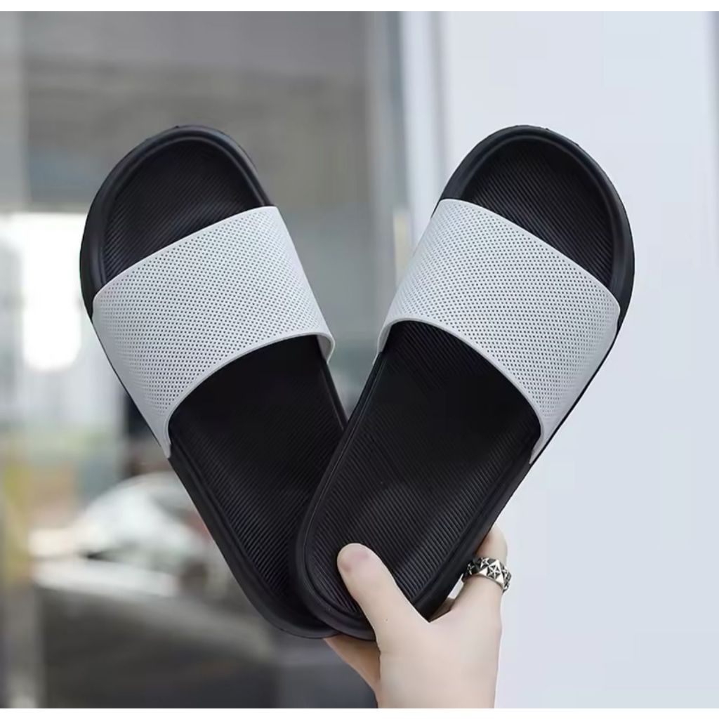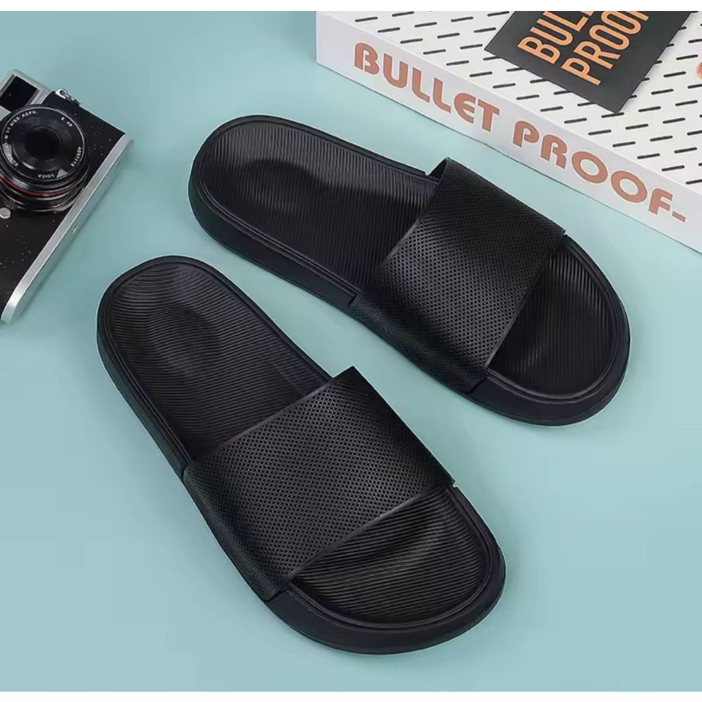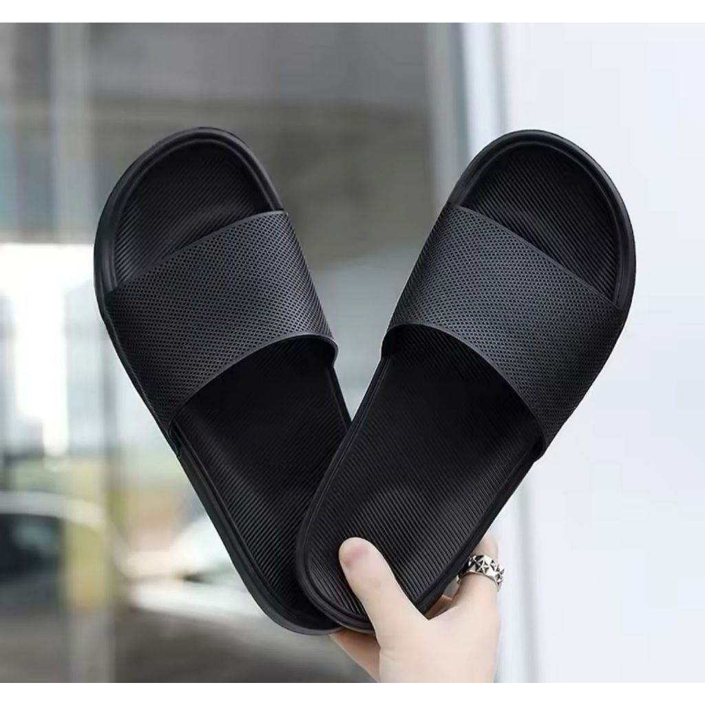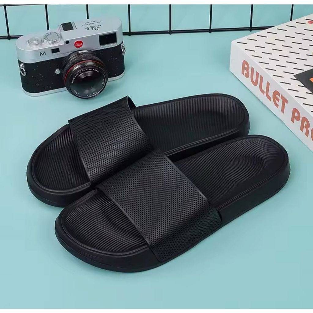 Sandal slop POLOS HITAM pria KARET / Sandal rumah bahan Eva / Sendal slop pria / Sandal slide pria 39 s/d 43