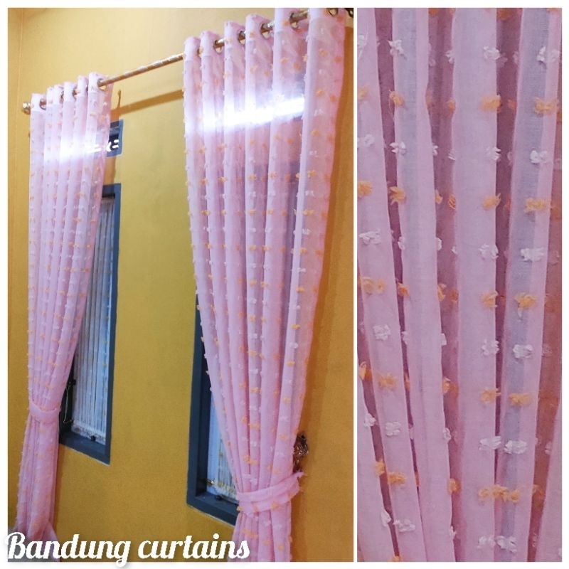 Gorden jendela pintu RUMAH vitrase poil pink merah abu model smokring 12 lubang 6 lipatan 140x200cm