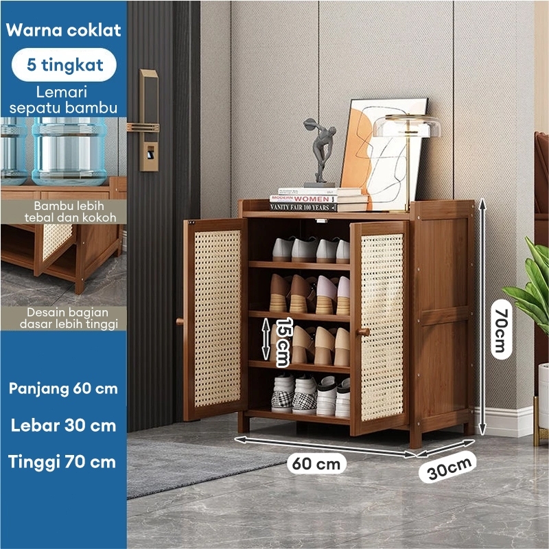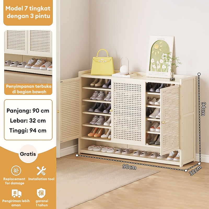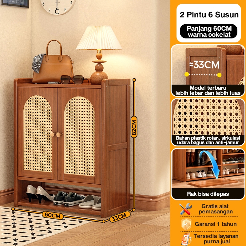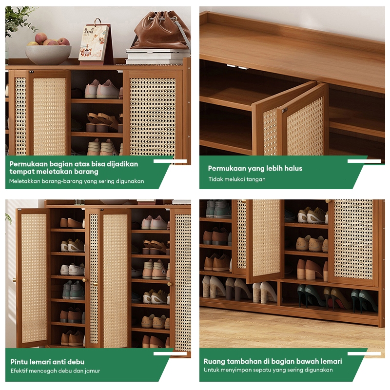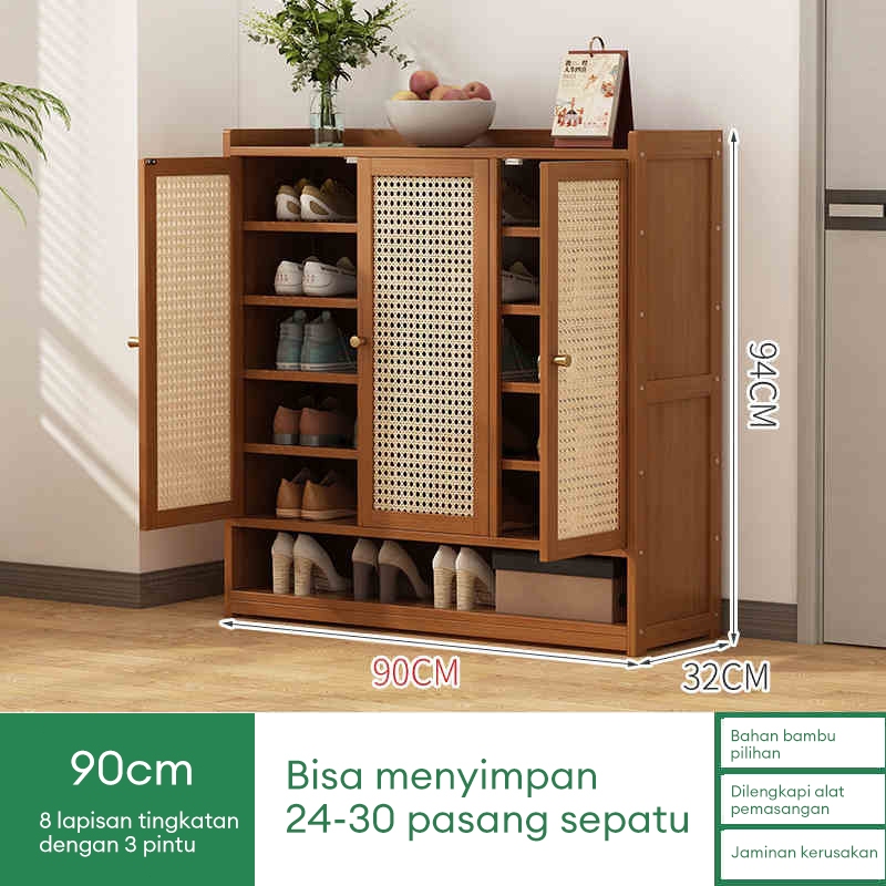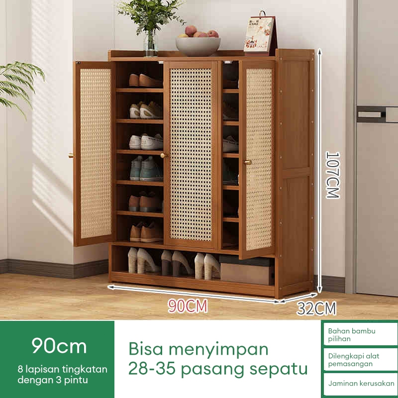 Lemari Sepatu Tertutup bambu Box Sepatu Rak Sepatu Minimalis Lemari Sepatu Rotan Jaring Bernapas