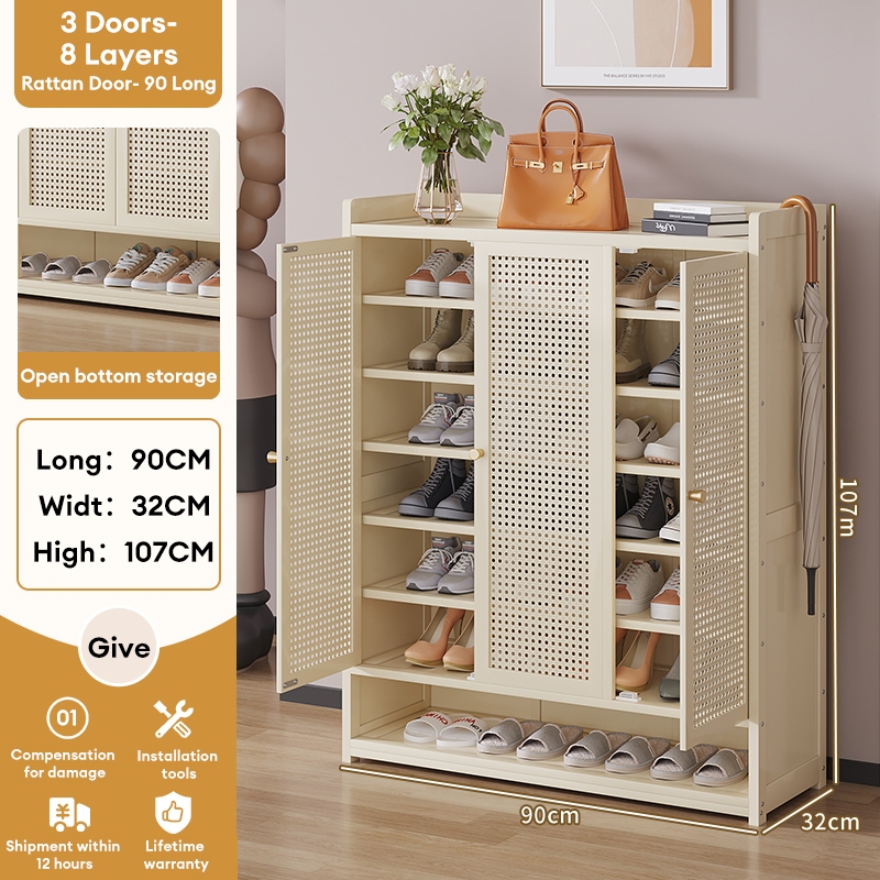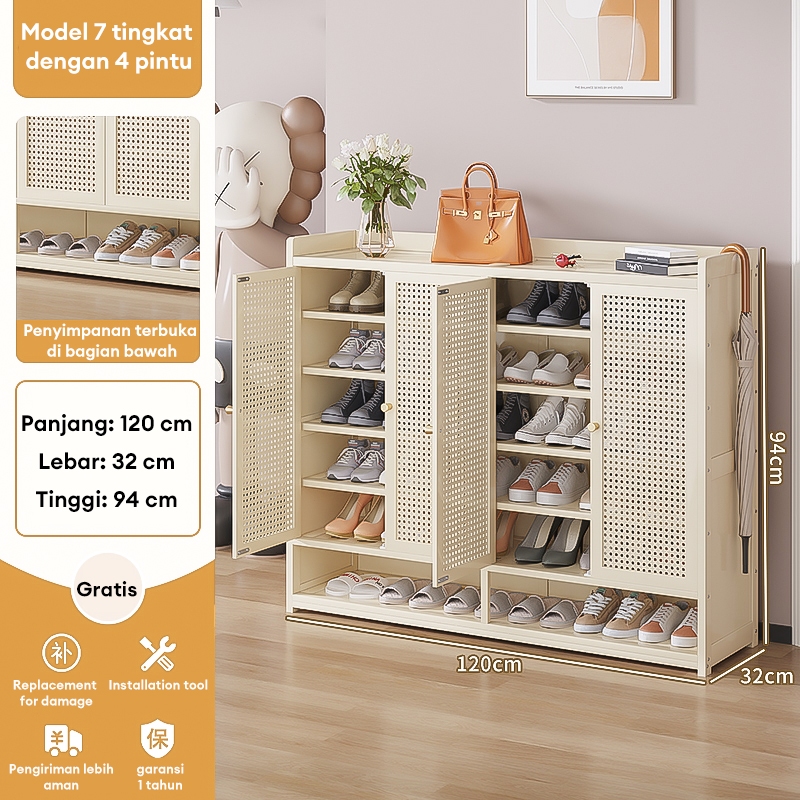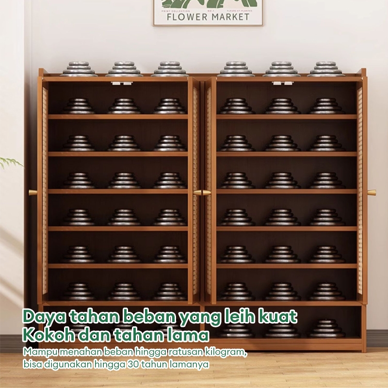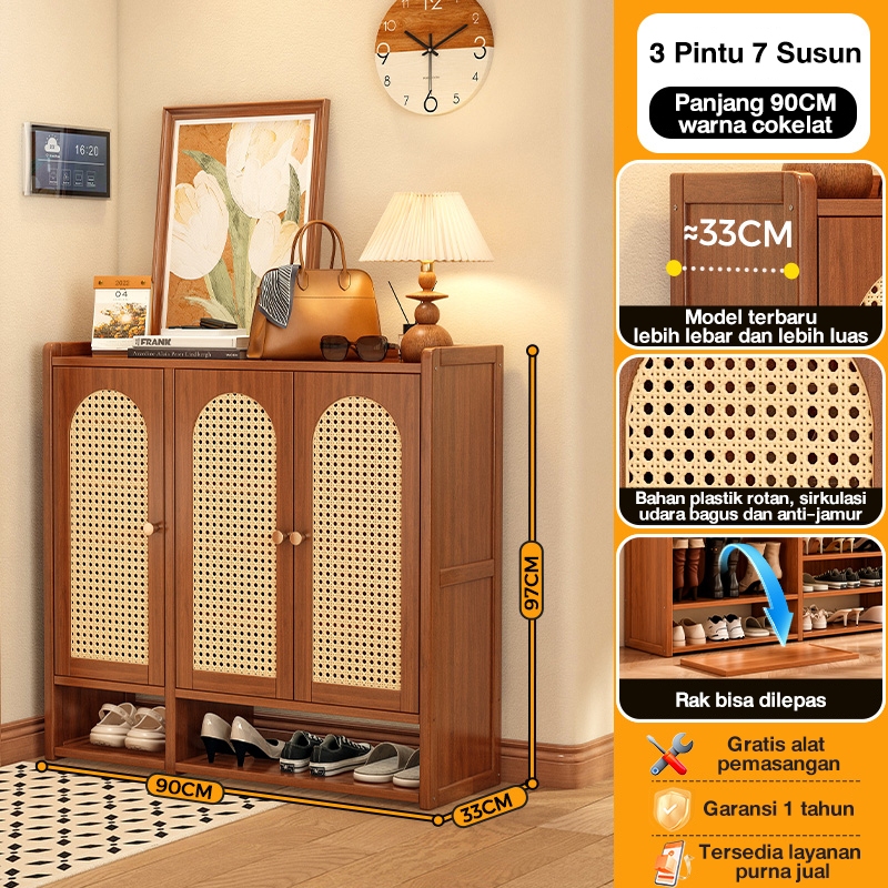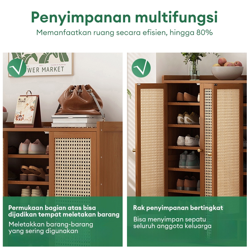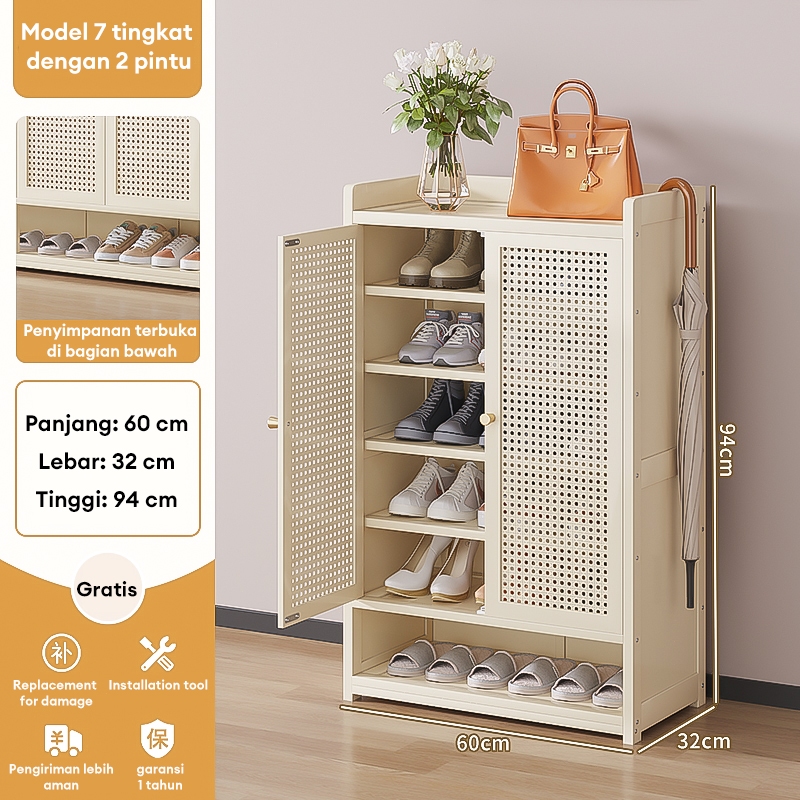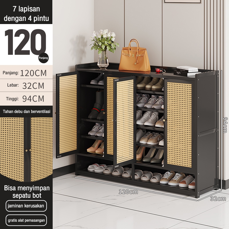 Lemari Sepatu Tertutup bambu Box Sepatu Rak Sepatu Minimalis Lemari Sepatu Rotan Jaring Bernapas