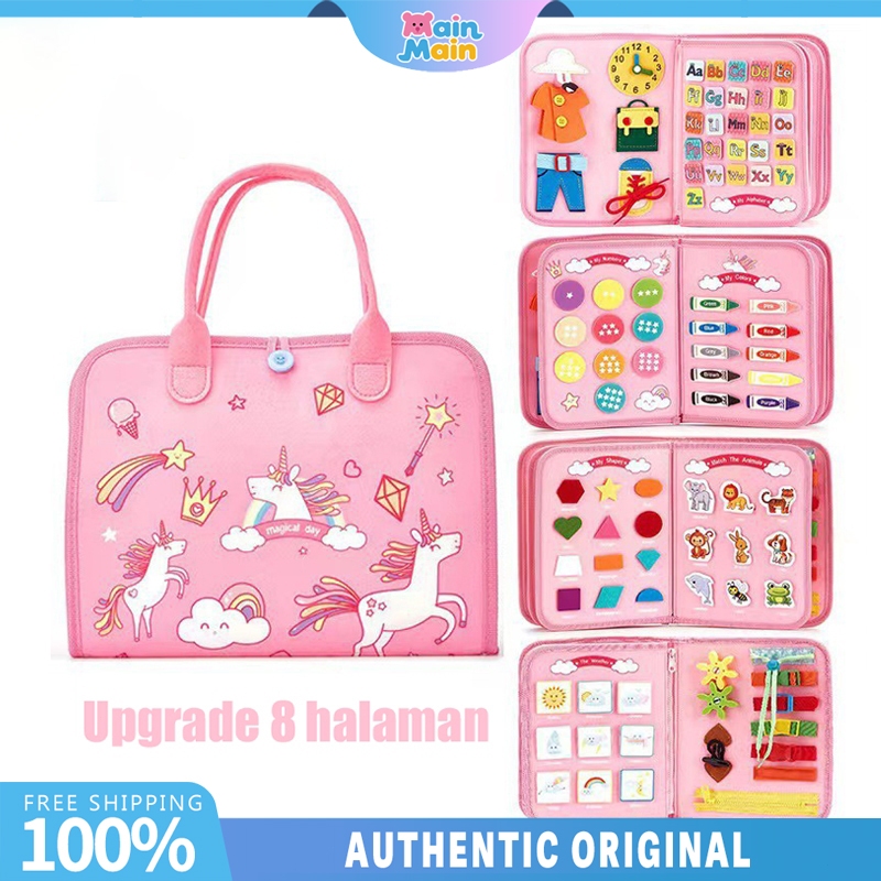 MainMain Busy Board Montessori Mainan 8 halaman Papan Untuk Perkembangan Sensorik Anak mainan edukasi anak Activity Book busy Book Training Pengembangan Kecakapan Hidup Basic Mainan Untuk Bayi Mainan anak-anak mainan bayi buku edukasi