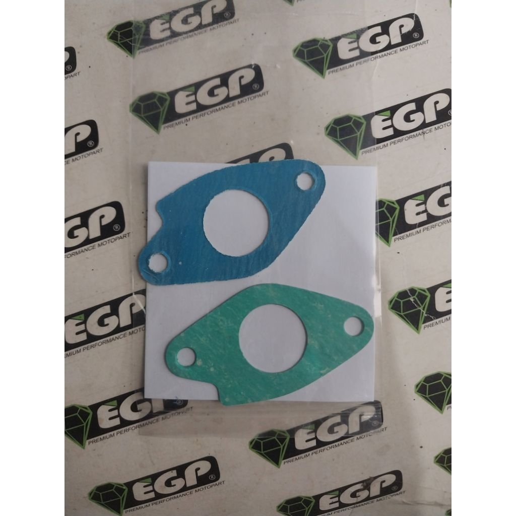 EGP 005 ( 2pc ) Gasket Manifold (Bahan Premium) Maniful karburator Atas Beat (Intake / Insulator) | Gasket EGP | Emerald Gasket Part | Paking EGP | Perpak | Packing