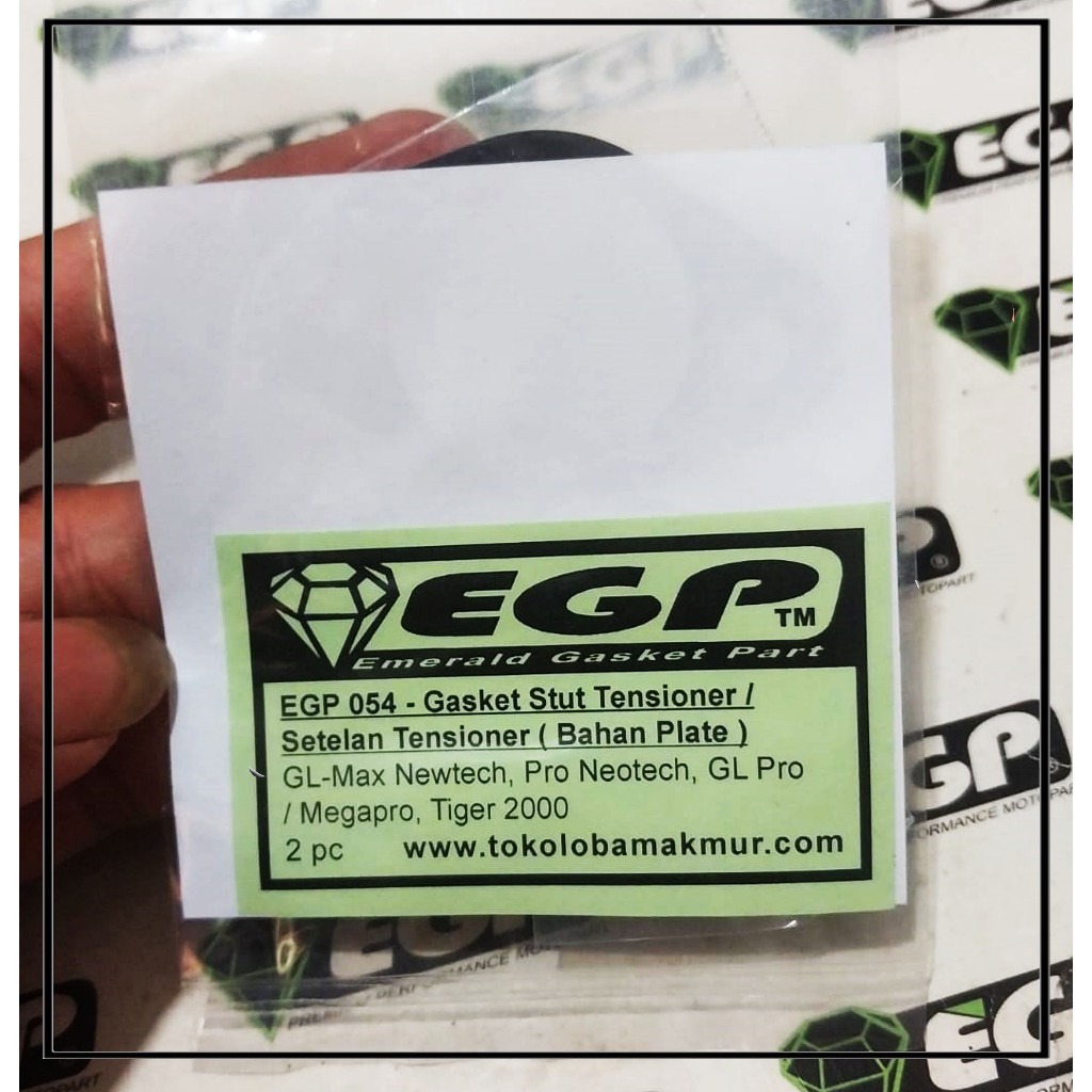 EGP 054 ( 2pc ) Gasket Stut Tensioner (Bahan Plate) / Setelan Tensioner GL-Max Newtech, Pro Neotech, GL Pro Neo/Megapro, Tiger 2000 | Gasket EGP | Emerald Gasket Part | Paking EGP | Perpak | Packing | Paking