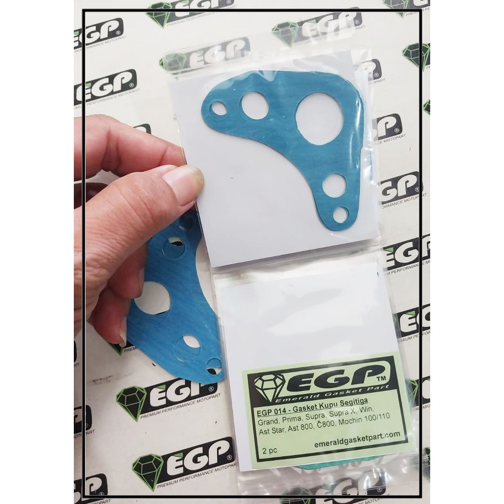 EGP 014 ( 2pc ) Gasket kupu segitiga (Bahan Premium) Grand, prima, supra x, win, astrea star, astrea 800, mochin 100/110 | Gasket EGP | Emerald Gasket Part | Paking EGP | Perpak | Packing