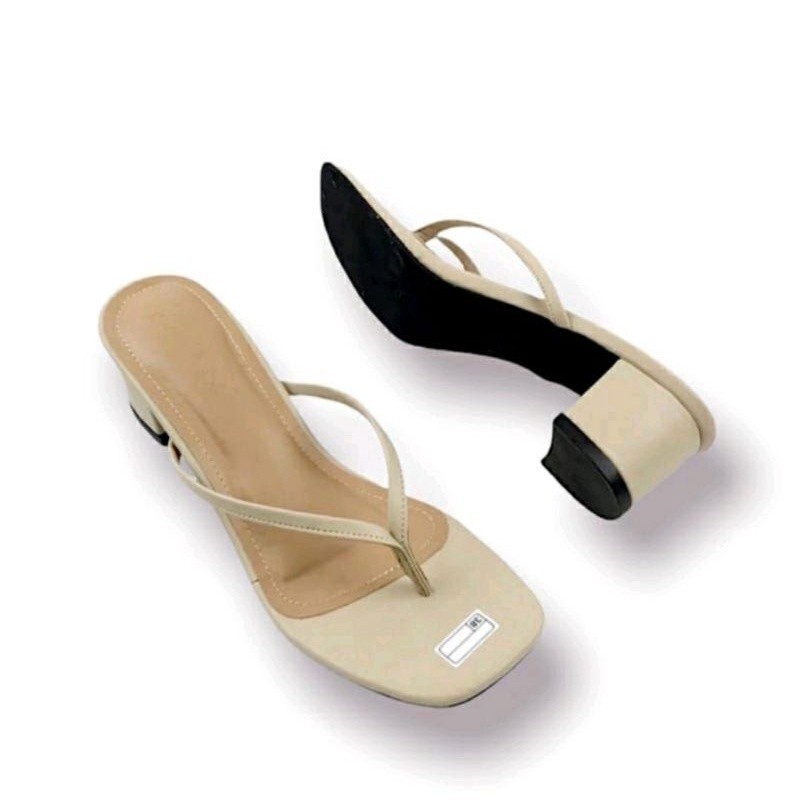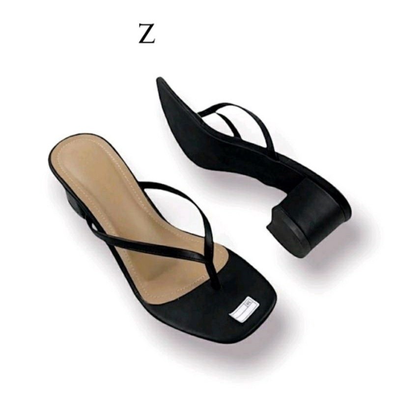 ZUNERA Sandal Jepit Haliza Heels 5cm hitam big size 36-42