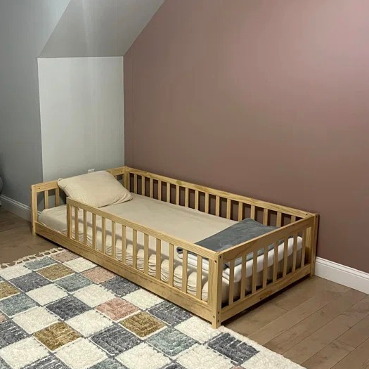 Furnitures Tempat Tidur Anak Lantai Dengan Pagar - Kamar Tidur Anak Kayu Minimalis