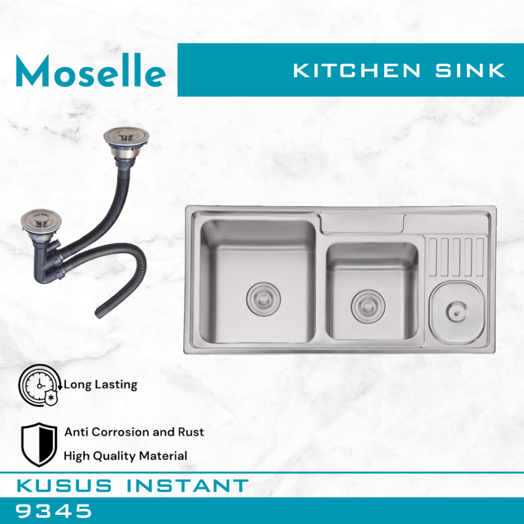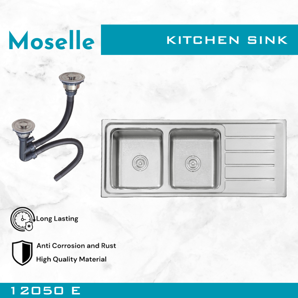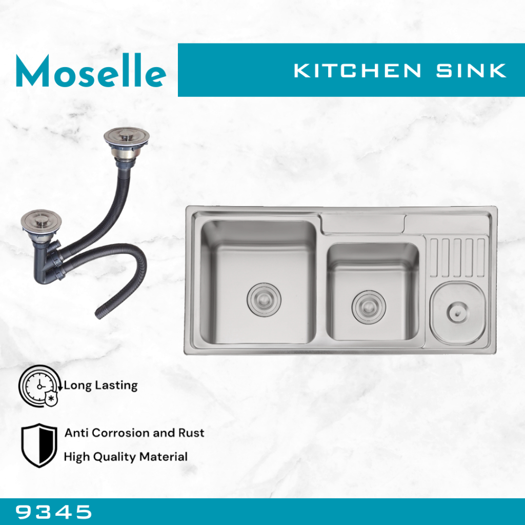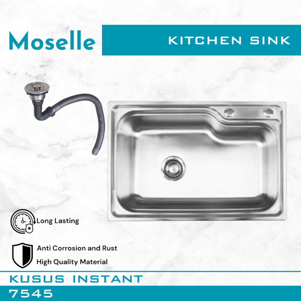 MOSELLE Bak Cuci Piring Dapur Kitchen Sink Stainless Steel Wastafel Paket Afur Selang 7545 8050 9345 12050
