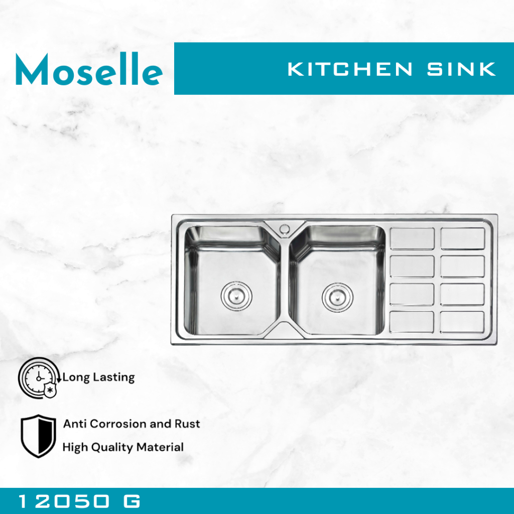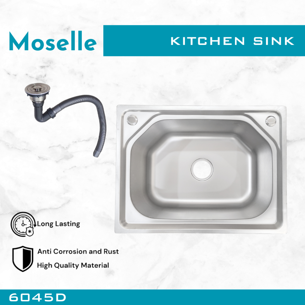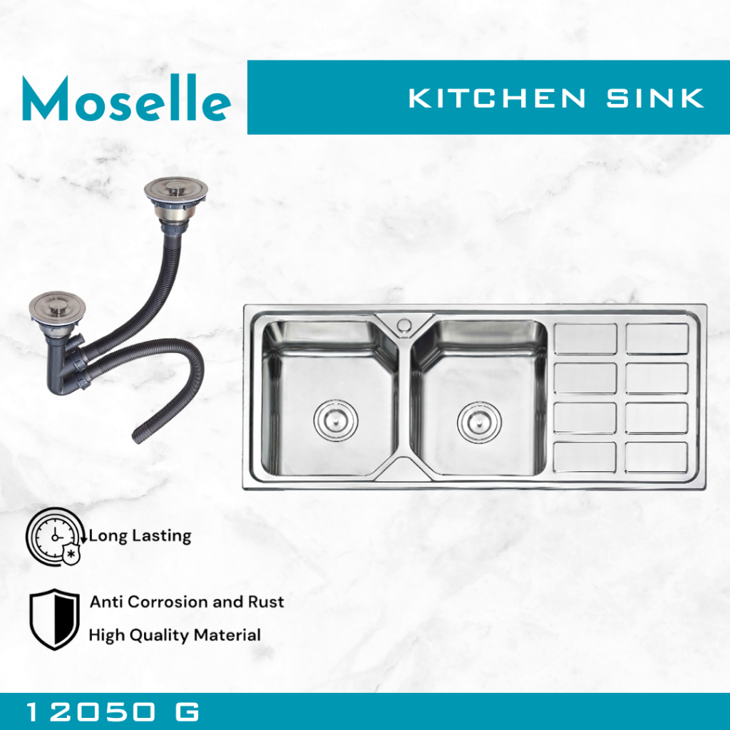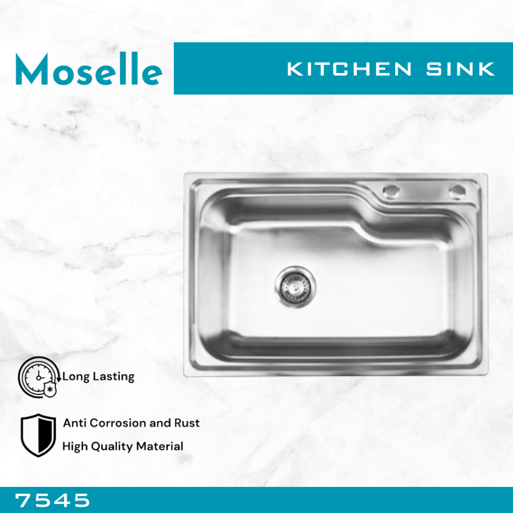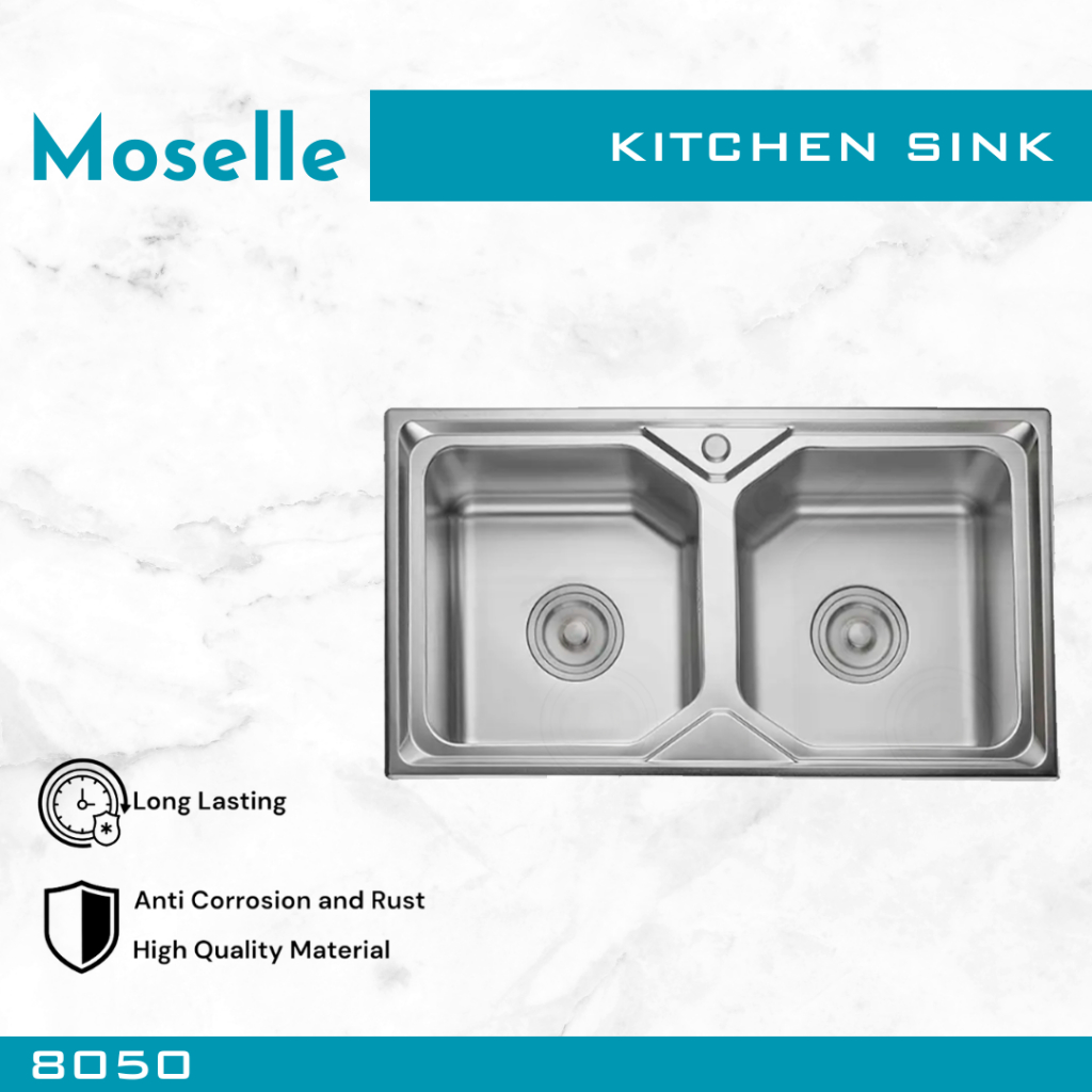 MOSELLE Bak Cuci Piring Dapur Kitchen Sink Stainless Steel Wastafel Paket Afur Selang 7545 8050 9345 12050