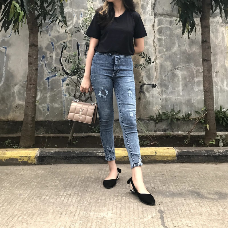 CELANA JEANS WANITA ATHENA SOBEK TIDAK TEMBUS BAHAN MELAR by JEANSLINE / JEANS HW ROBEK / JEANS 7/9