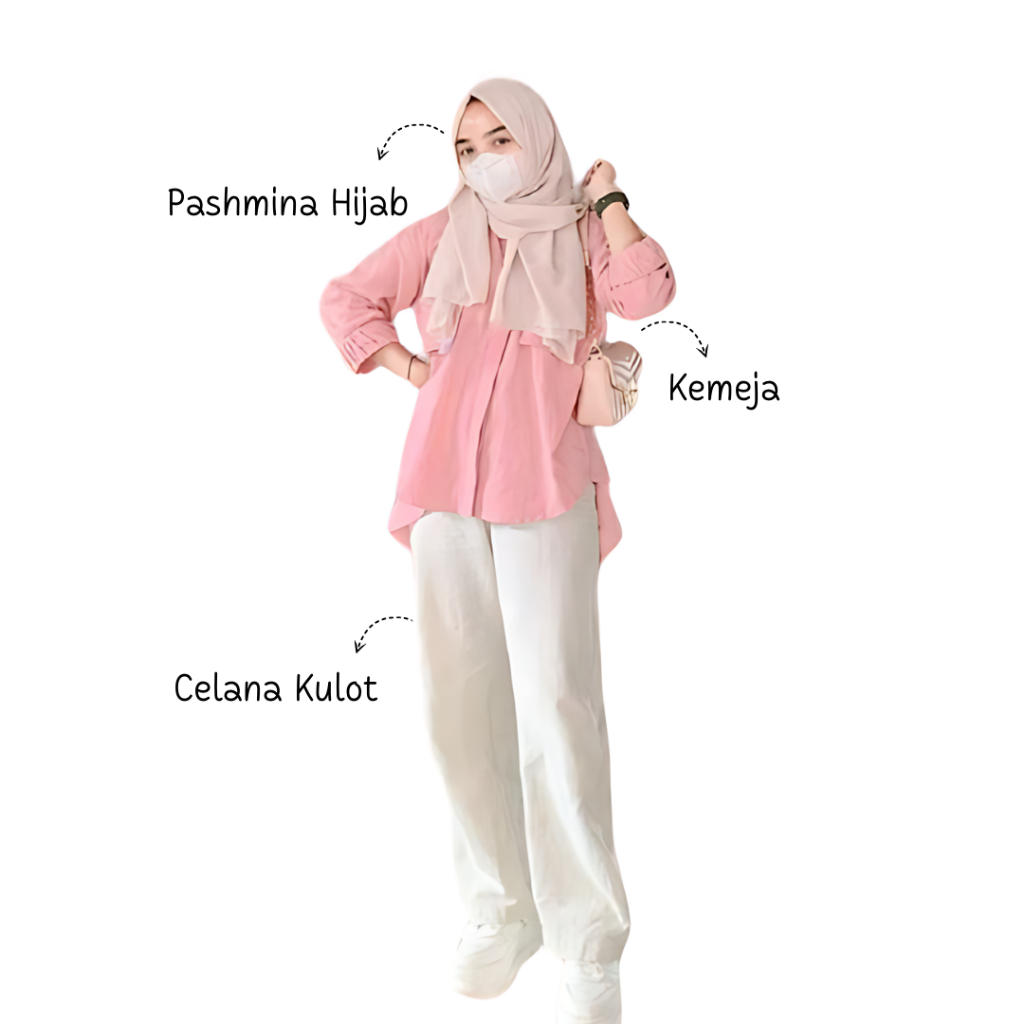 One Set Korean Style Wanita OOTD Hijab Blouse Lengan Panjang Long Sleeve Kemeja Pink Set - T065