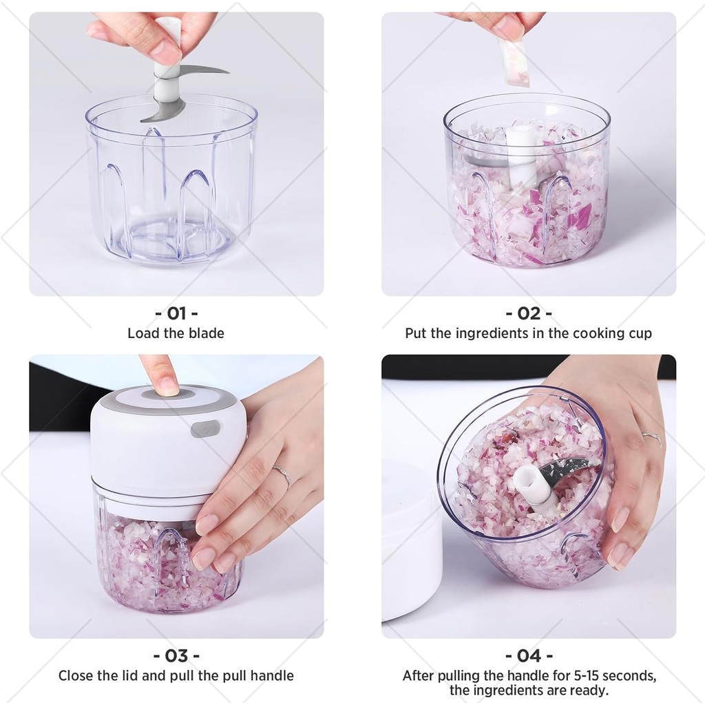 Electric Garlic Chopper, Mini Portable Veggie Chopper, 250ML Garlic Grinder Masher Onion Chopper, Blender to Vegetable, Wireless