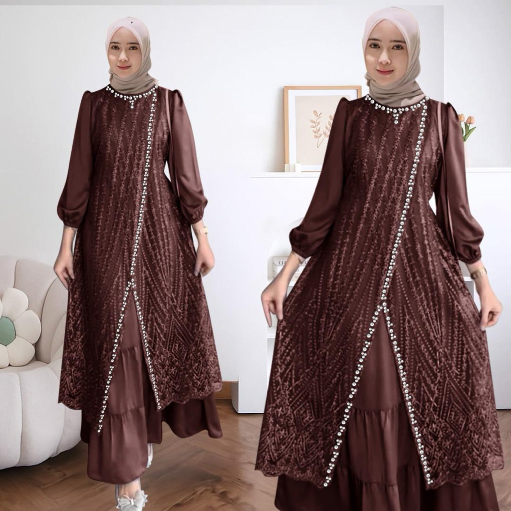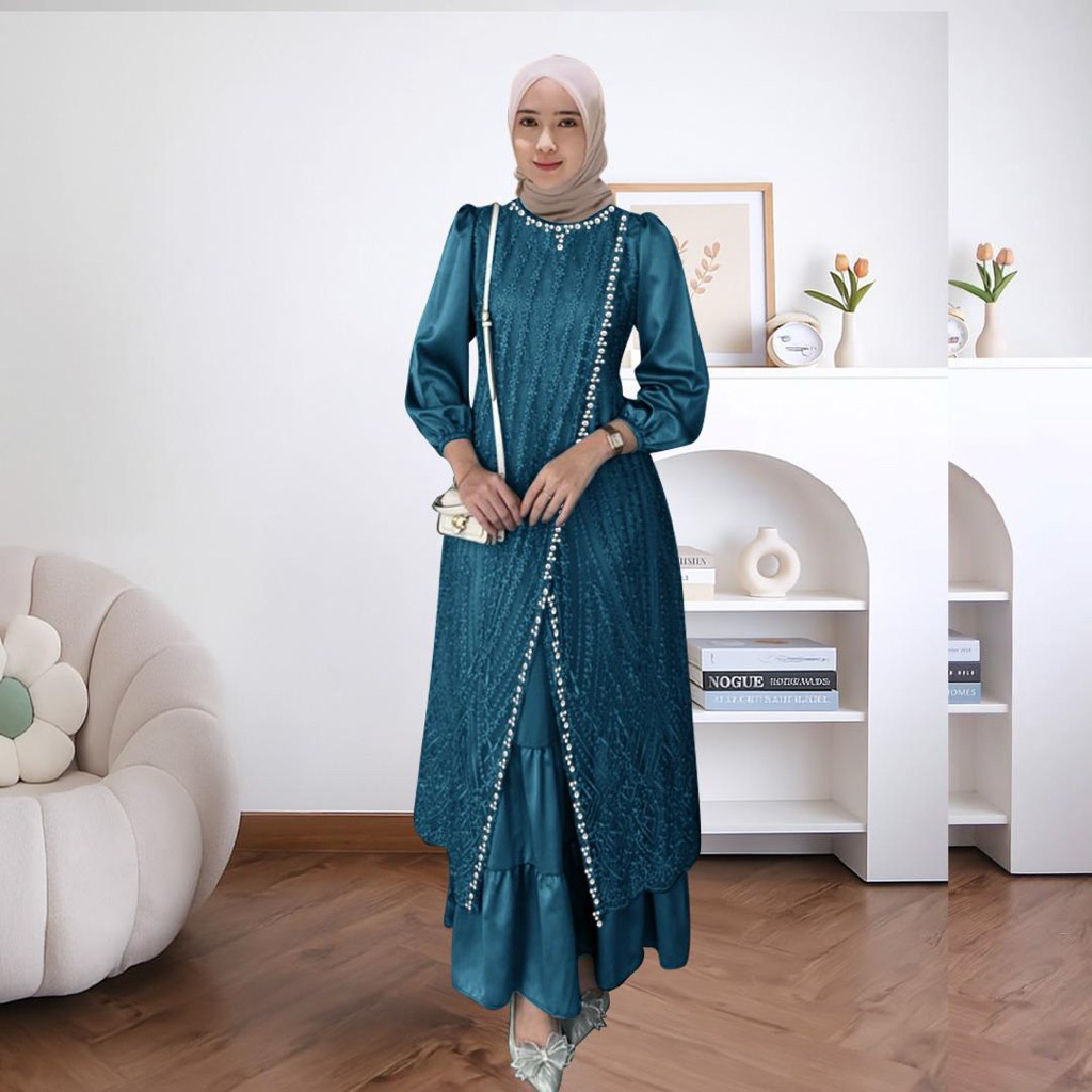 MAXI MAUDY ( M L XL XXL ) GAMIS PESTA BRUKAT MEWAH GAMIS KONDANGAN BAJU PESTA MUSLIM CANTIK BAHAN SATEN KOMBI BRUKAT