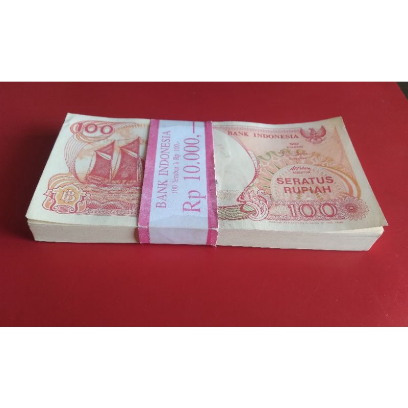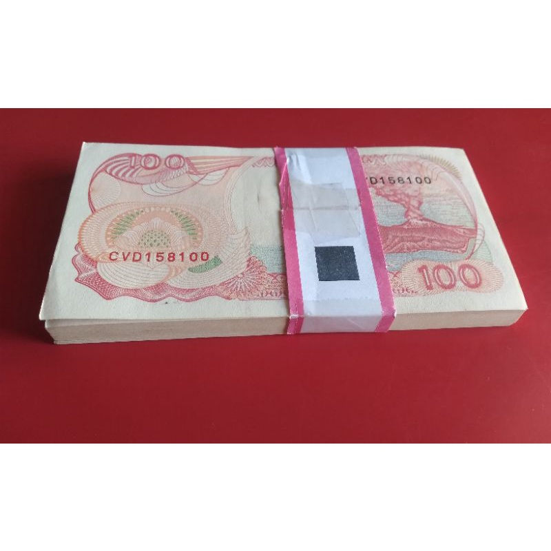 1 Gepok (100 lembar) Uang Kuno Kertas 100 rupiah Perahu Pinisi