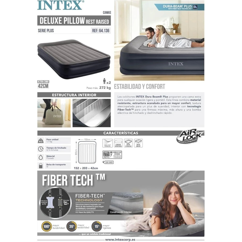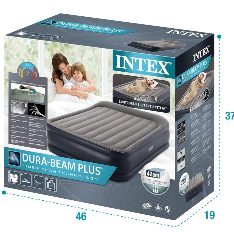 Intex Kasur Angin Pompa Otomatis Air Bed Queen Durabeam Deluxe 64136 Pillow Rest Raised - Matras Kasur Built-in Pump | Kasur Tiup 152x203x42 cm