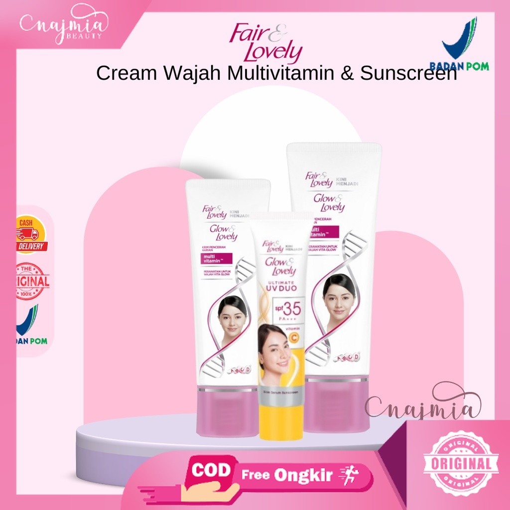 Najmia - Derma Glow Fair And Lovely Cream Wajah Multivitamin 23g 46g , Sunscreen 20g 40g - Glow & Lovely Cream, Sunscreen l Powder Cream