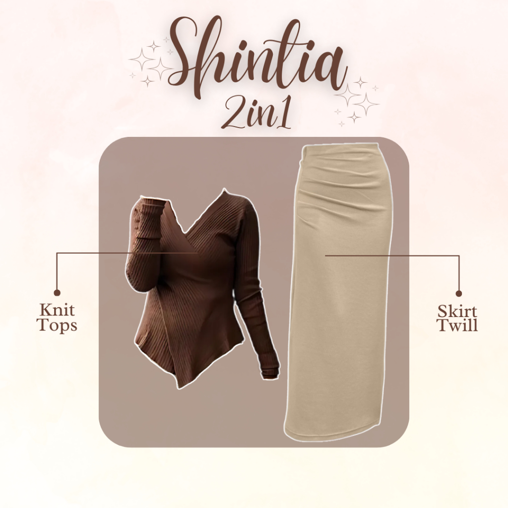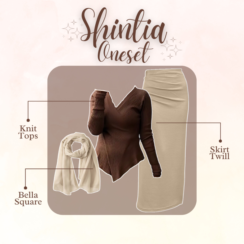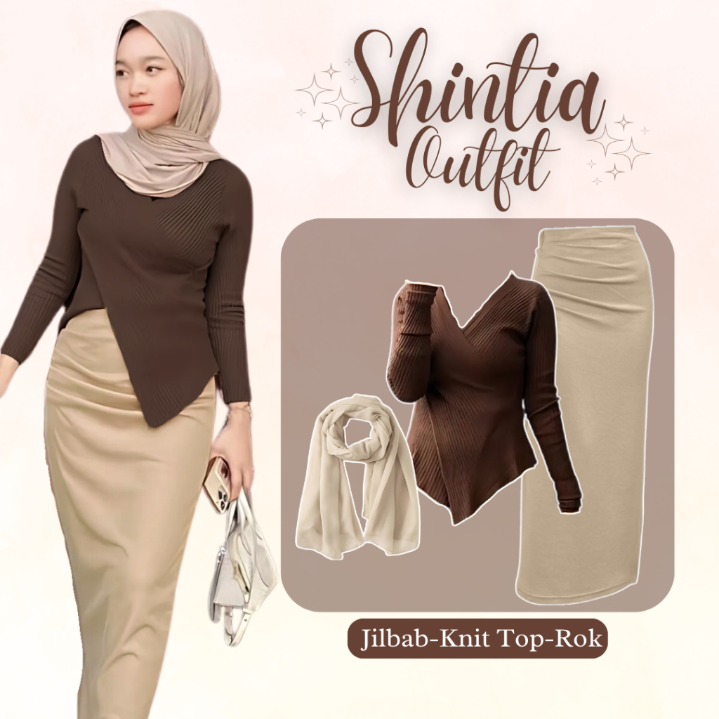 Shintia Outfit - One Set Wanita Kekinian (Setelan Rok Span - Knit Top - Jilbab Bella Square) LP086