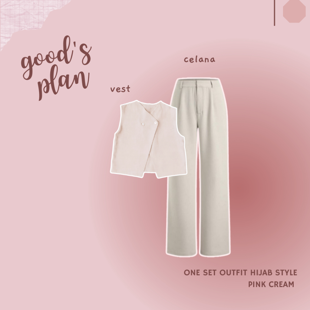 One Set OOTD Hijab Style ( Vest - Kemeja - Celana - Jilbab Bella Square ) Setelan Wanita - LS130