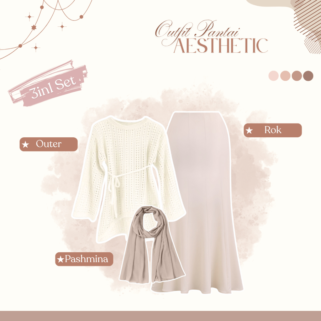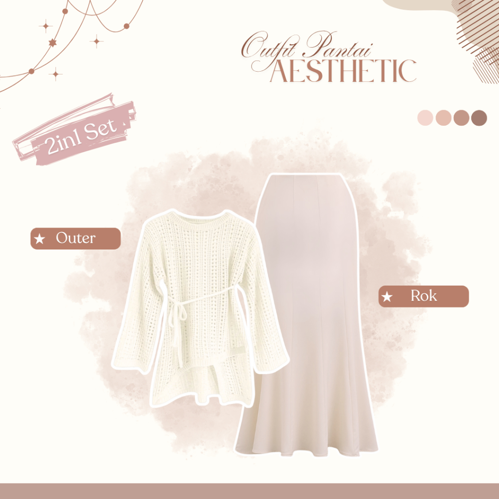 Setelan Wanita Kekinian ( Outer Pantai + Rok Duyung + Hijab) One Set Yuruma Korean Style - LS199