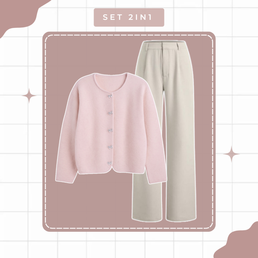 Setelahan Wanita 4in1 || Cardigan Abelia, Loose Pants, Bella Square, Tas || Outfit Hangout CS017