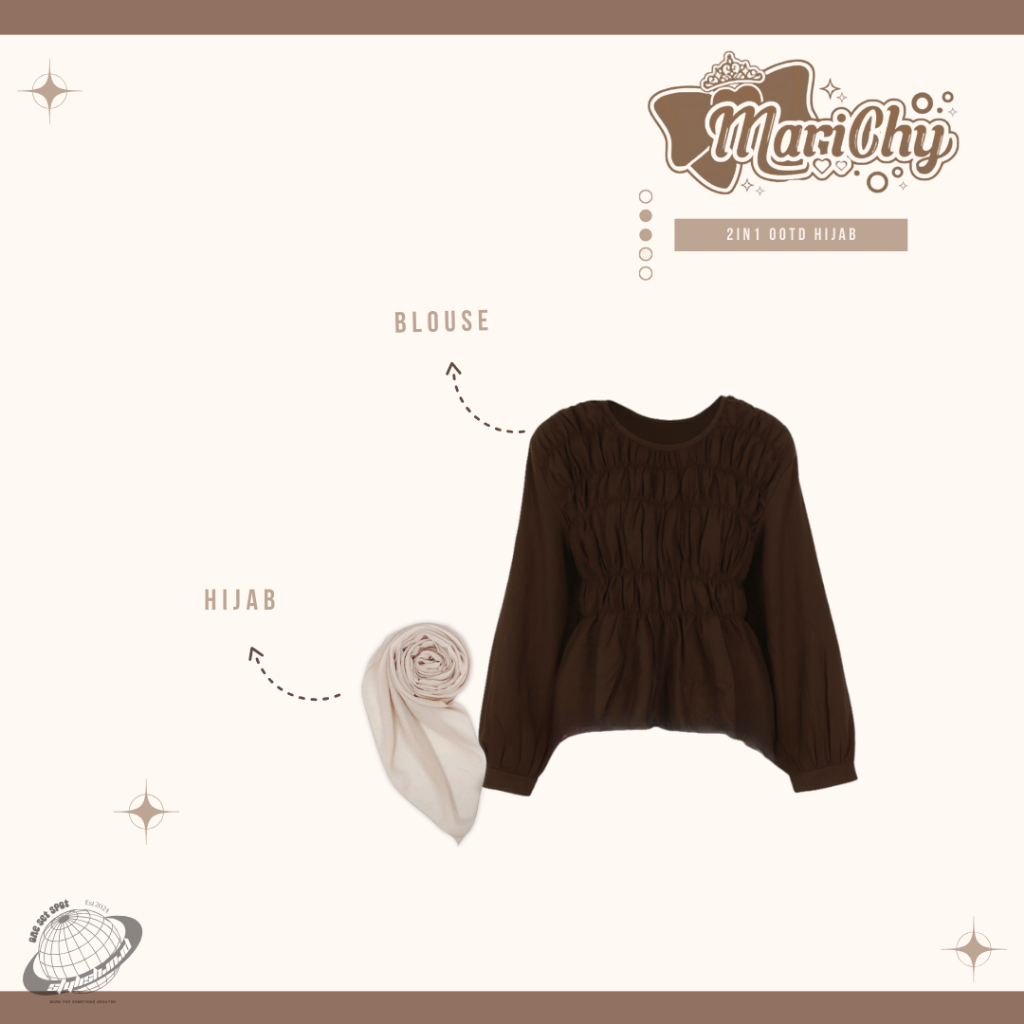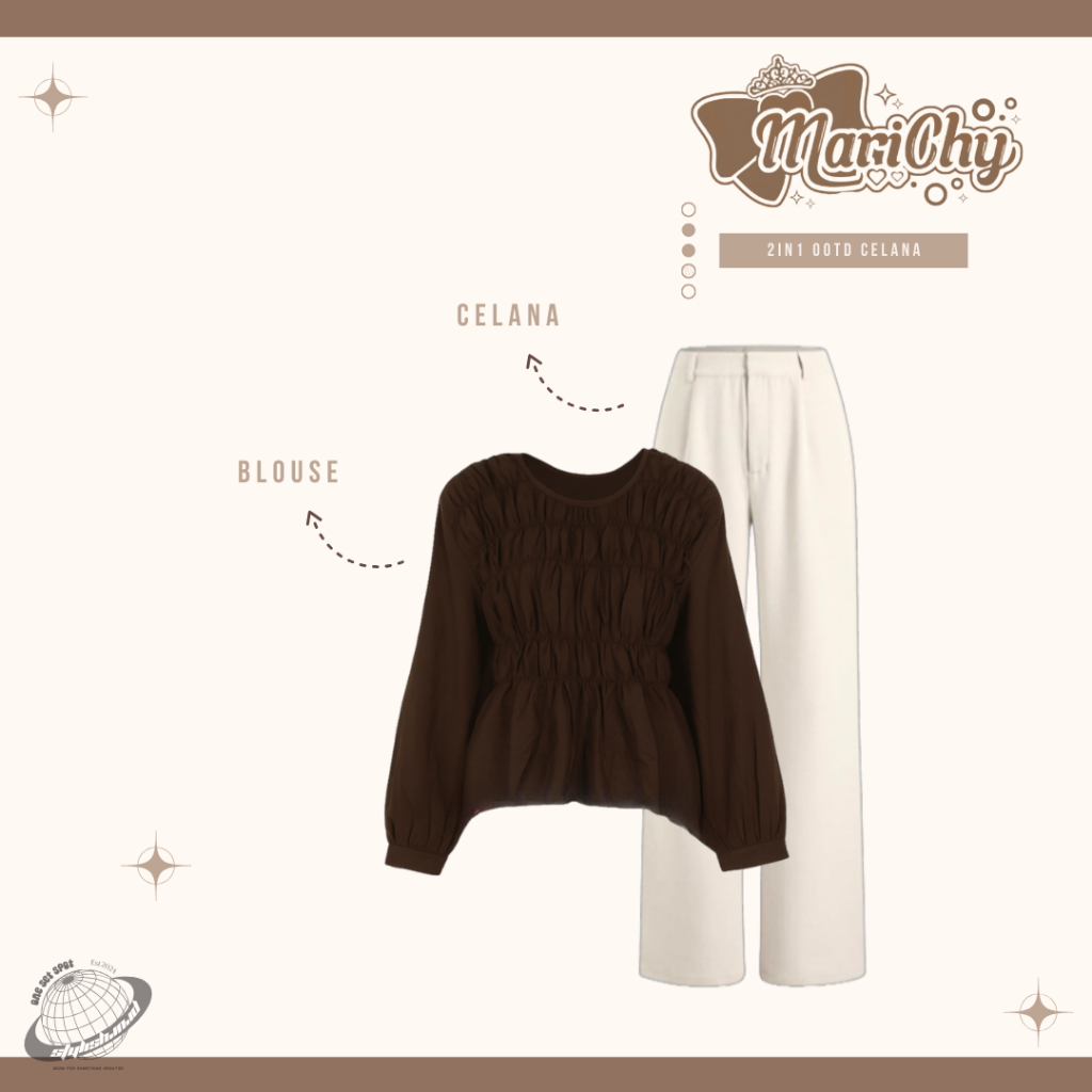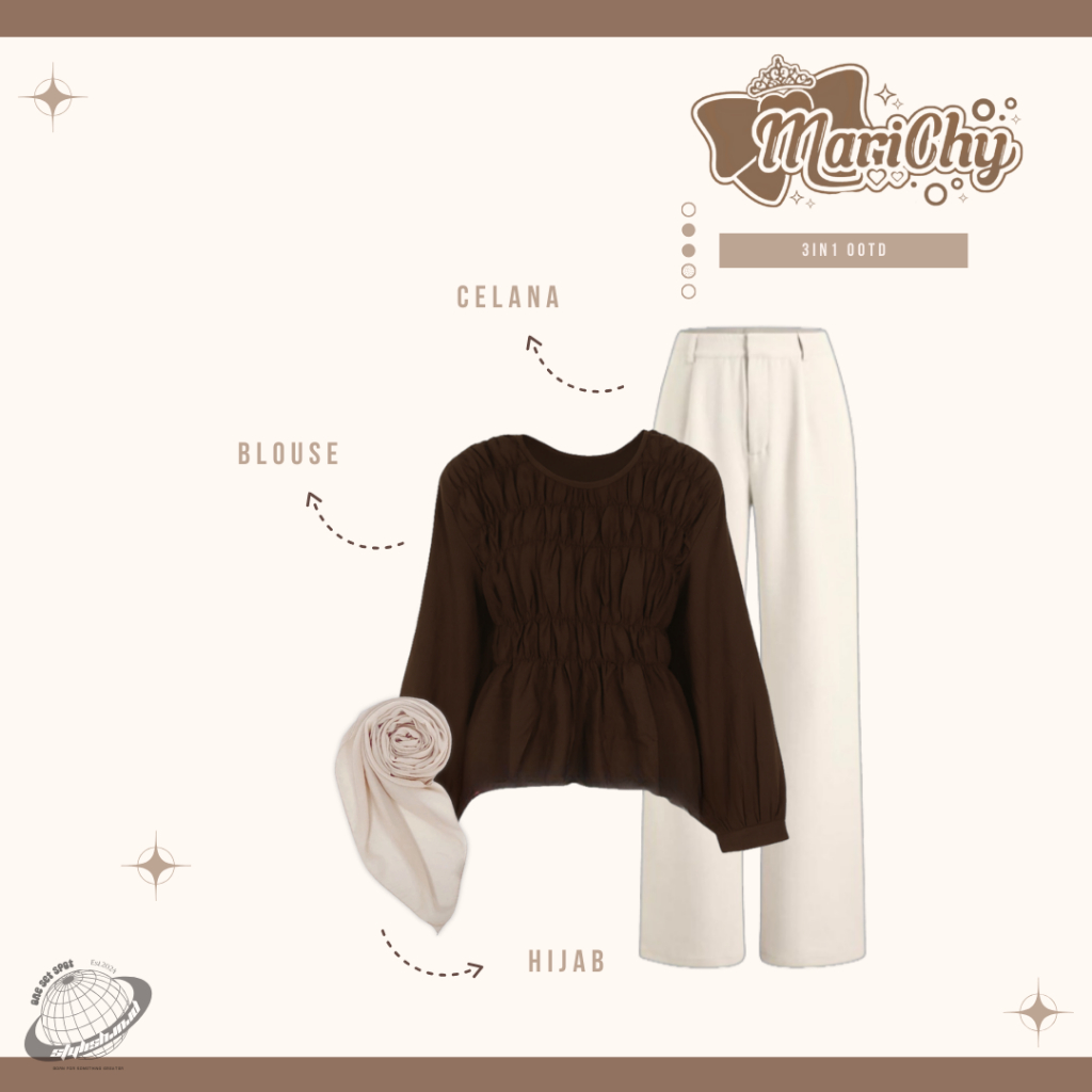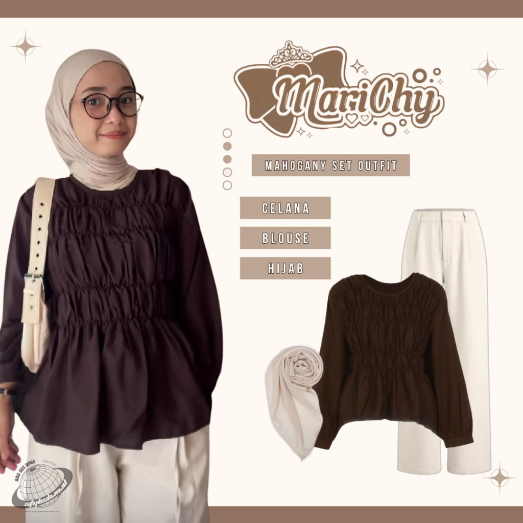 Mahogany Outfit One Set (Blouse Kerut + Celana Knit + Jilbab Segiempat) OOTD Hijab Casual LI017