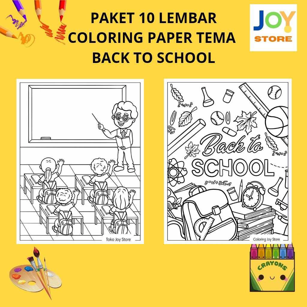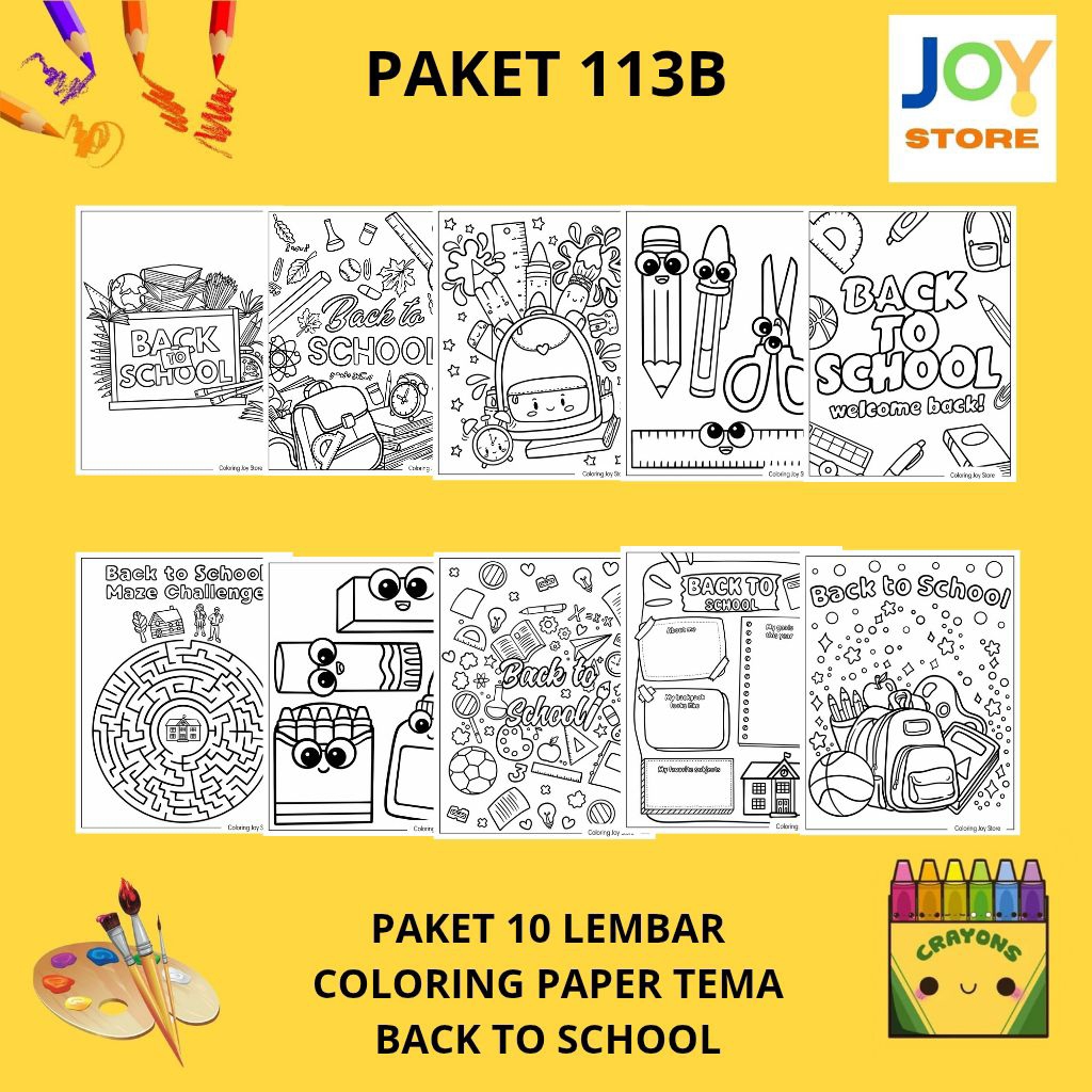 PAKET 10 Lembar Kertas Gambar Mewarnai Tema Back to School / Kembali ke Sekolah / Peralatan sekolah Ukuran A4 150 gsm - Coloring Paper 113
