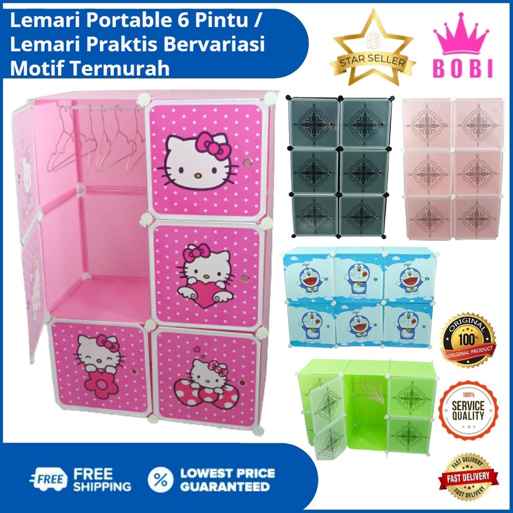 Lemari Pakaian 6 Pintu Portable Multifungsi - Portable Wardrobe Cabinet Ukuran : 75P X 111T