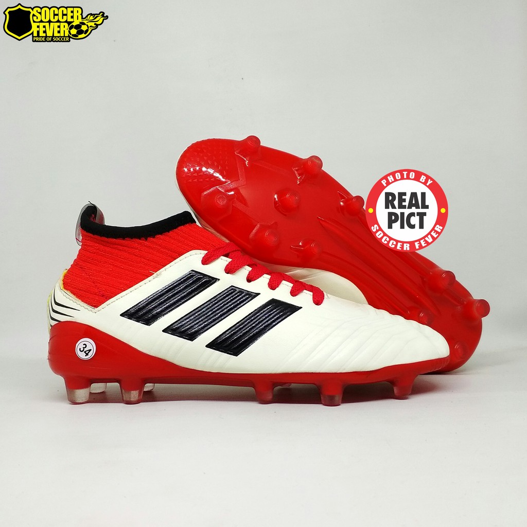 Sepatu Sepak Bola Anak Adidas Predator Putih List Hitam Boot Kids