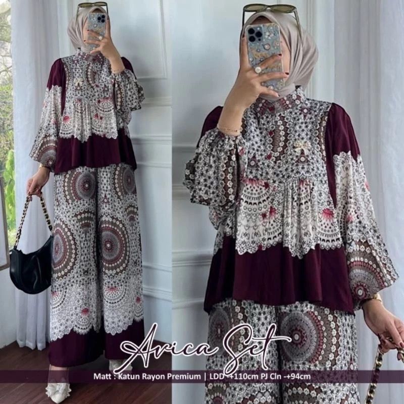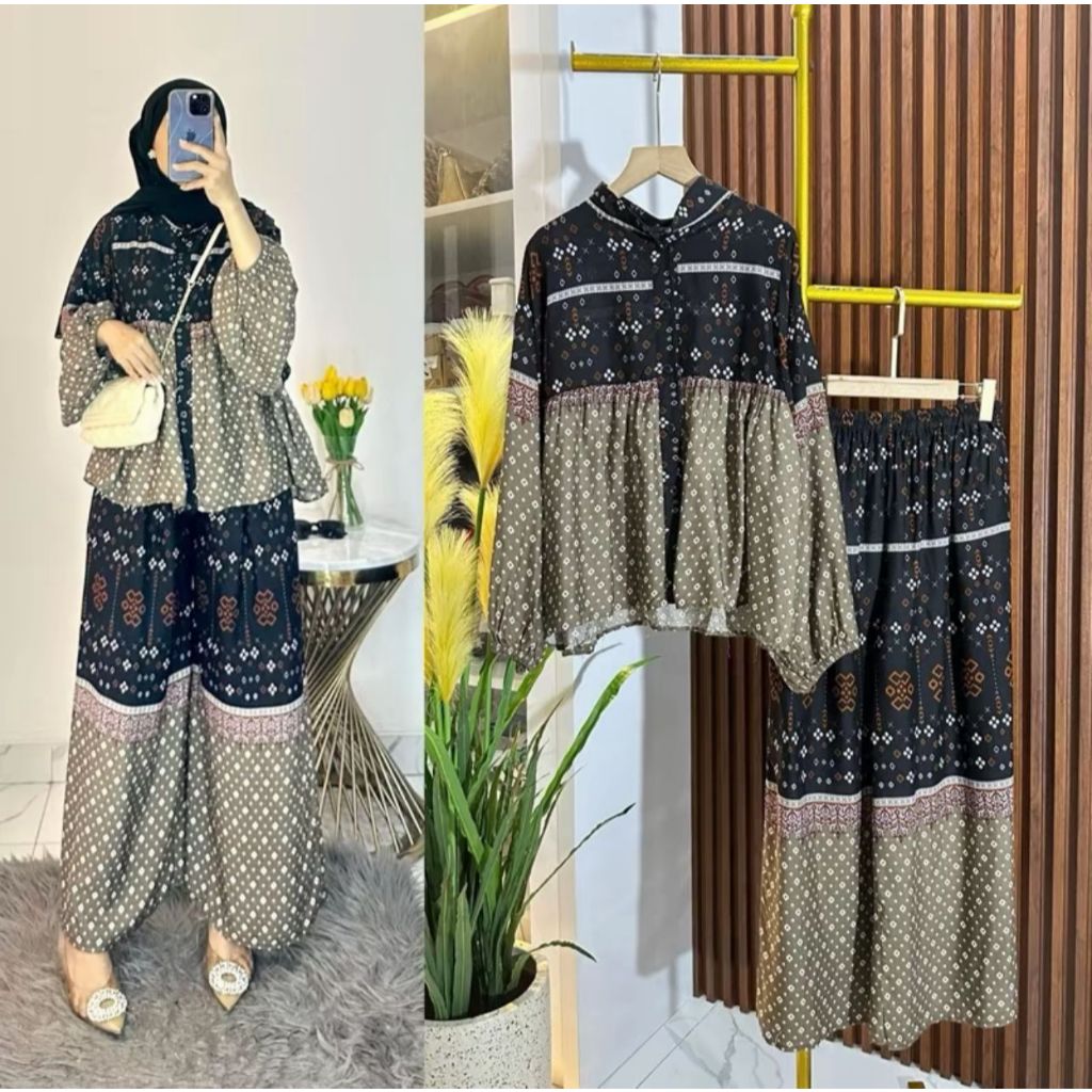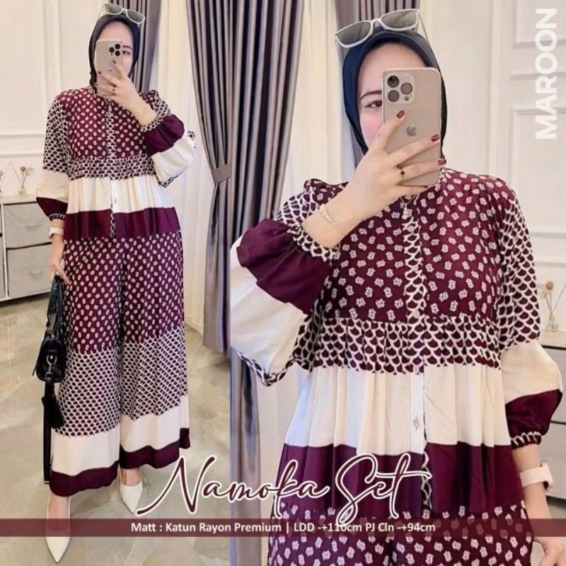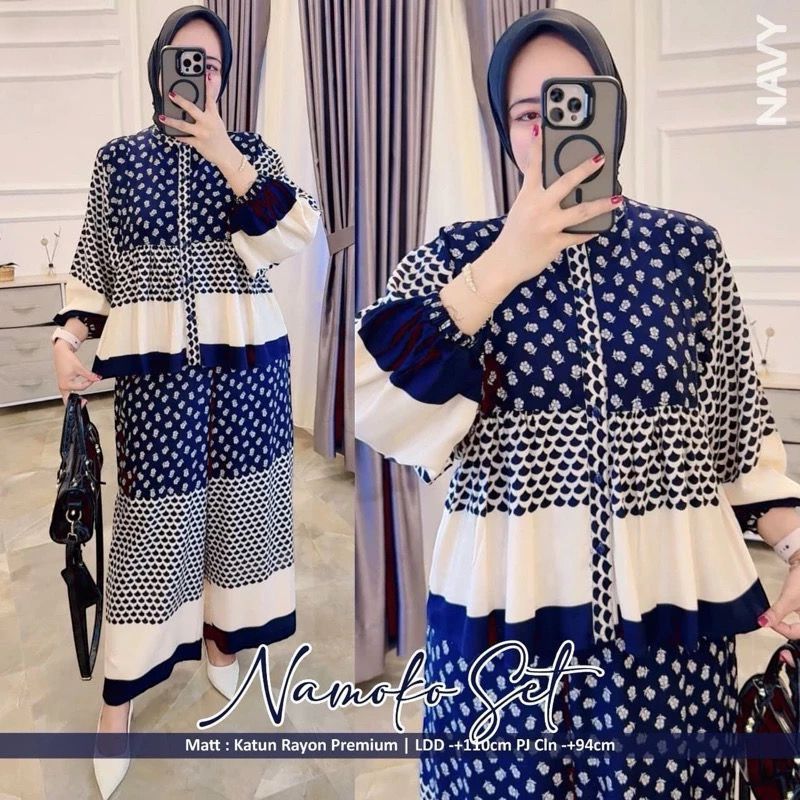 NAMOKA SET RAYON LD 110 - 120 CELANA KULOT // SETELAN RAYON // ONE SET NAMOKA // SET POLKADOT // SET WANITA KEKINIAN // SET WANITA MOTIF // SETELAN MUSLIMAH OOTD FASHION WANITA // SET GEMMI // AVIKA SET RAYON // SETELAN RAYON