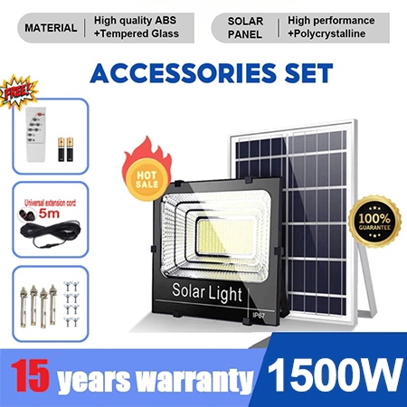 MOOOZ [Beli 1 Gratis 1] Lampu tenaga surya outdoor lampu sorot solar cell otomatis Lampu solar panel Tahan air IP67 LED super terang 15000W remote Halaman Taman