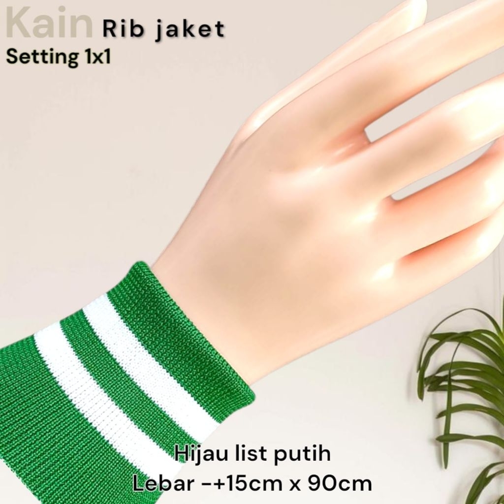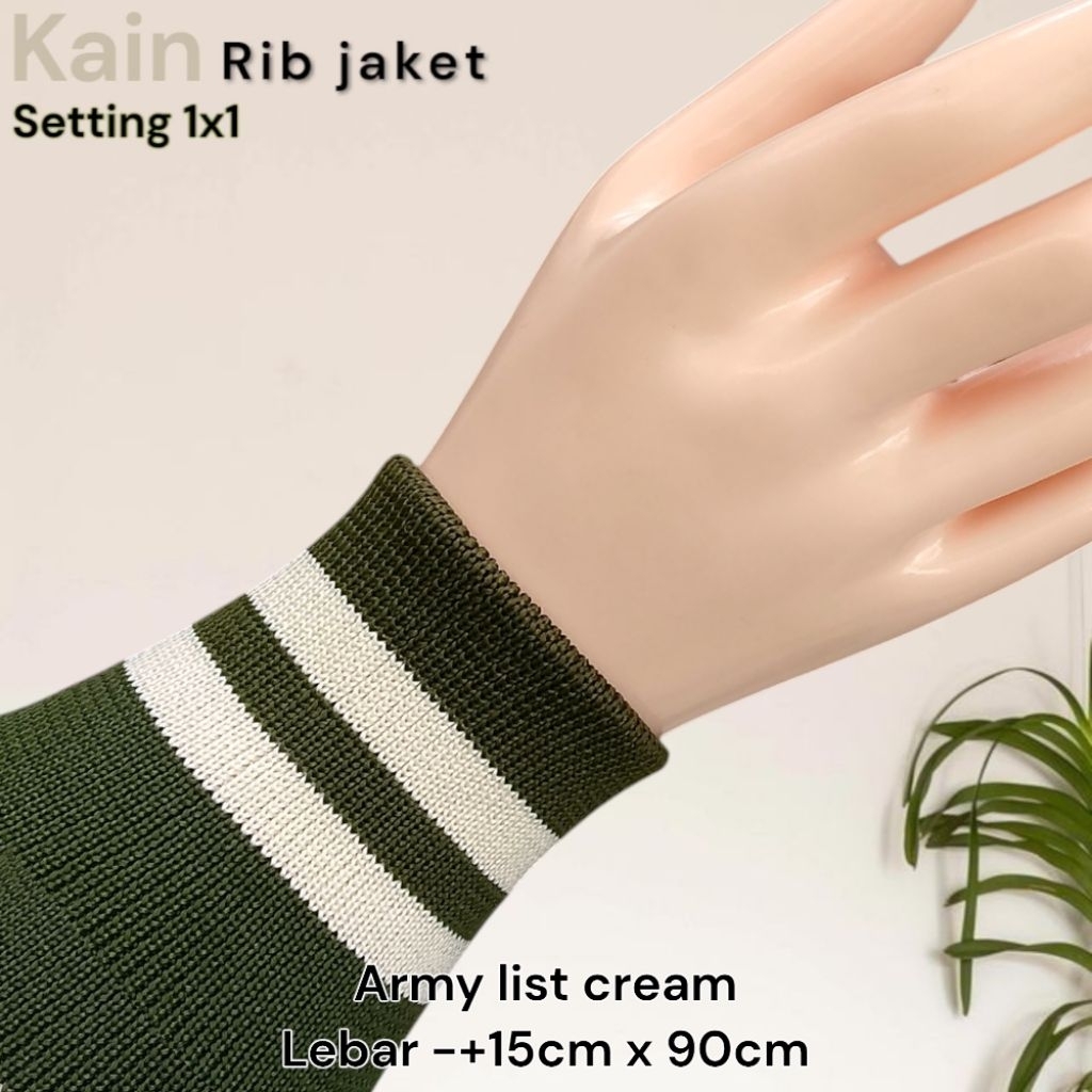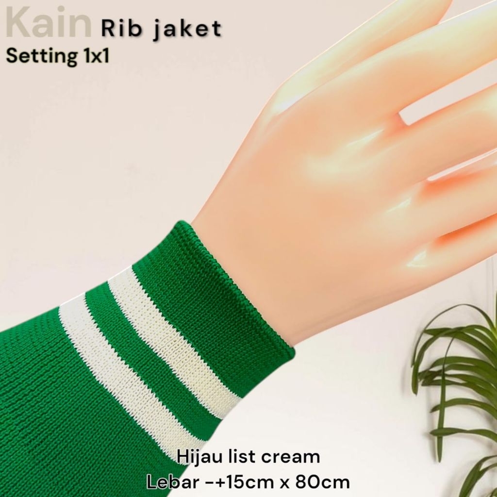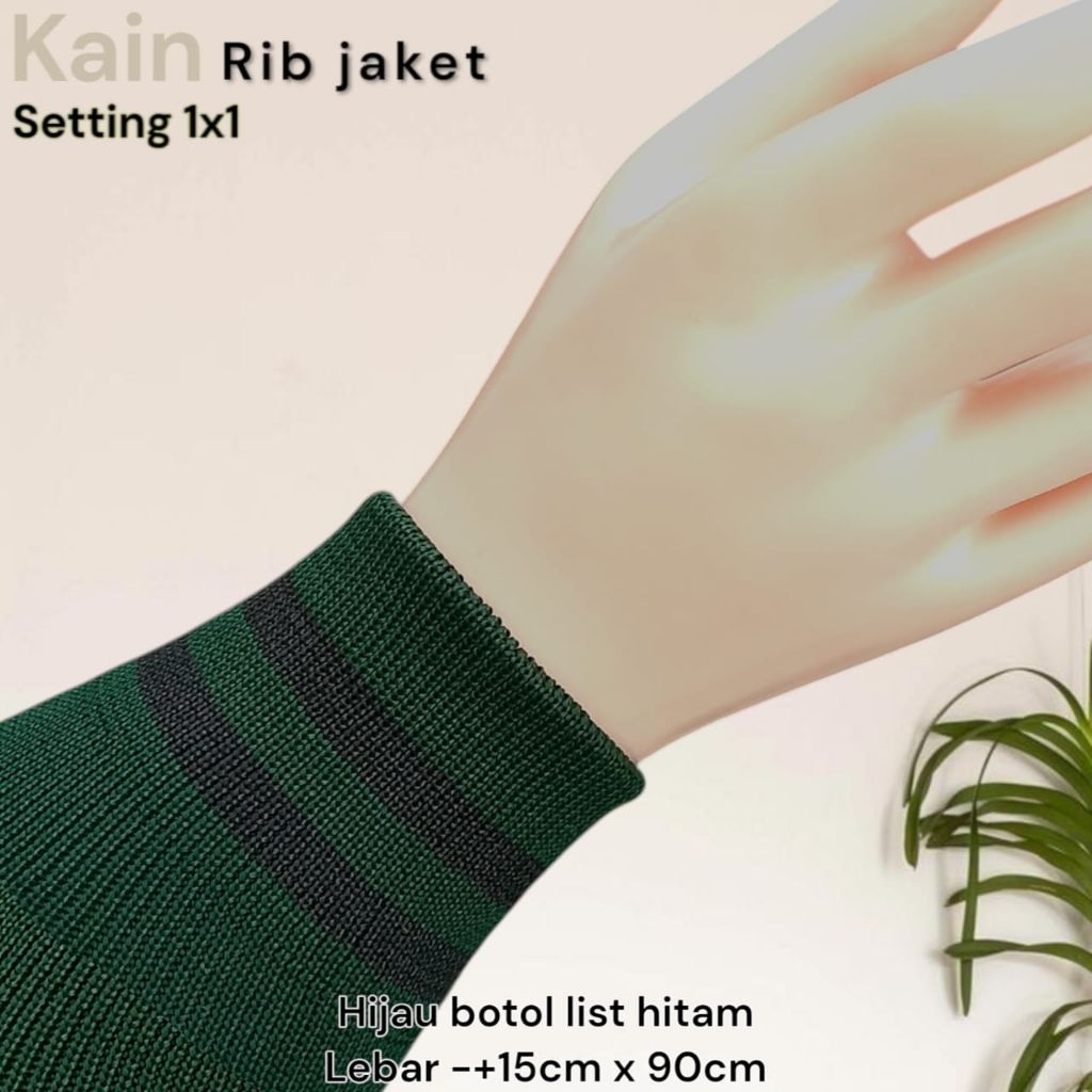 Kain Rib Jaket warna hijau Army 1x1 babat 2x2 polos dan strip Polyester premium perlembar