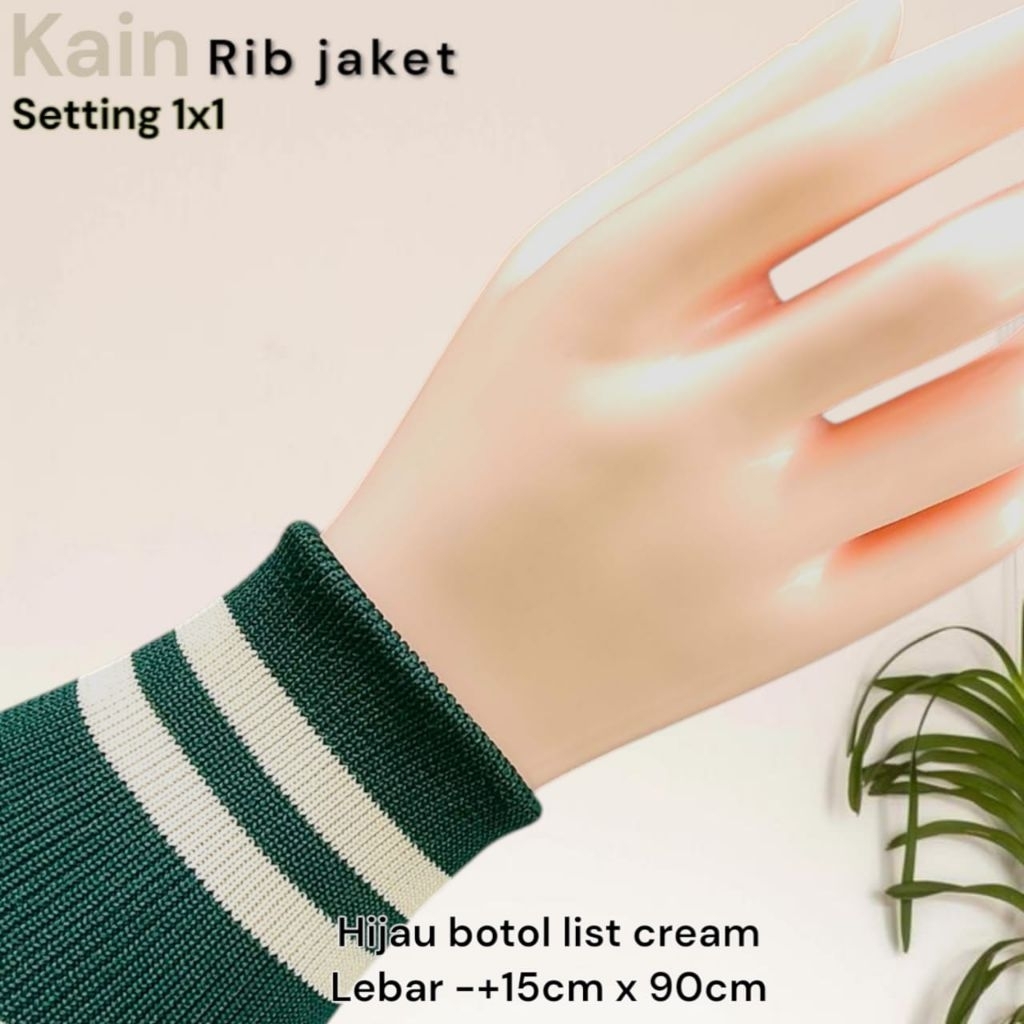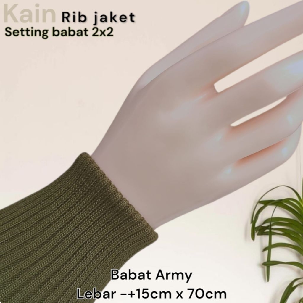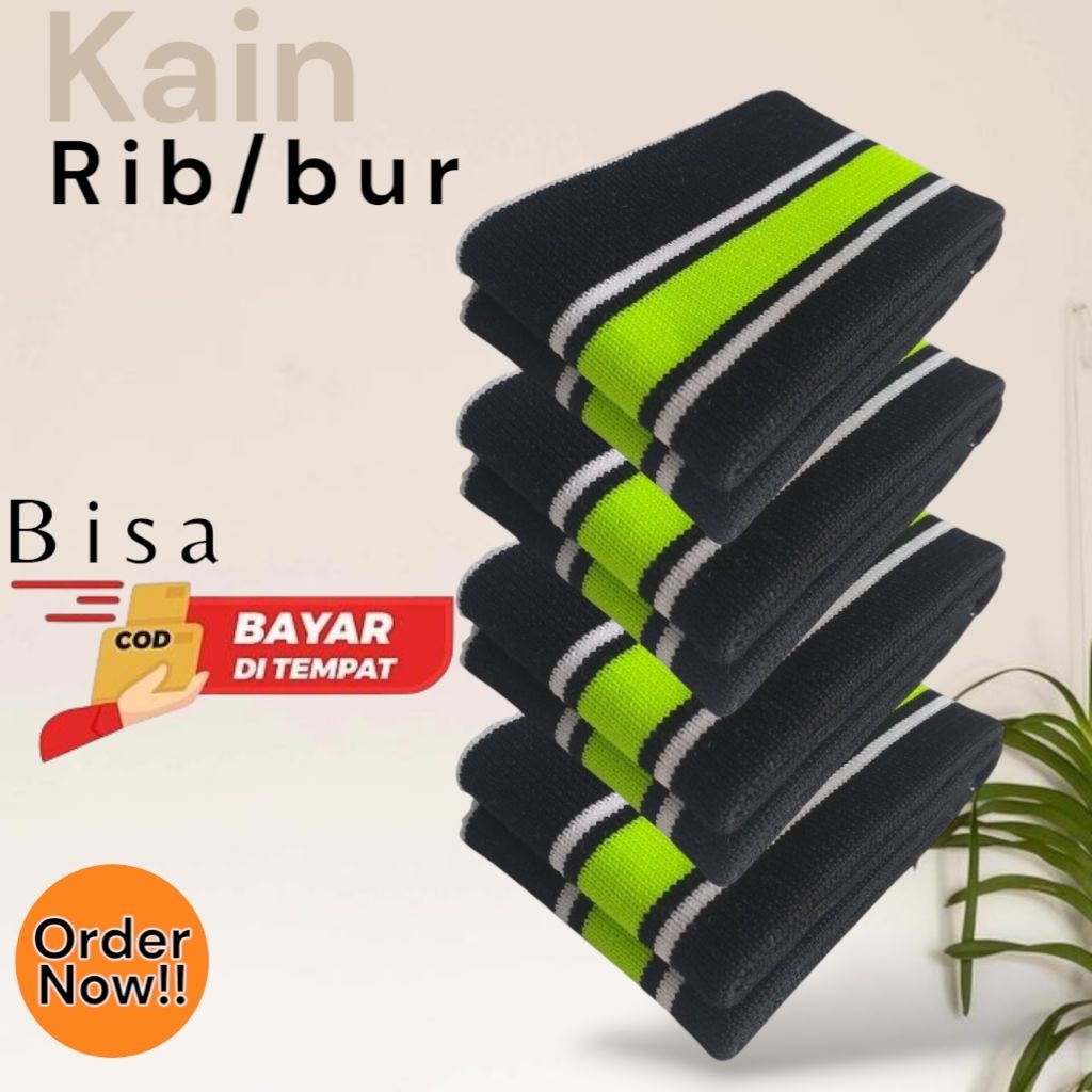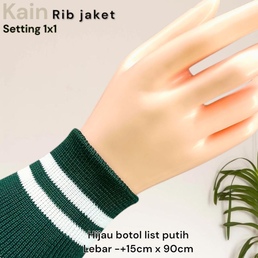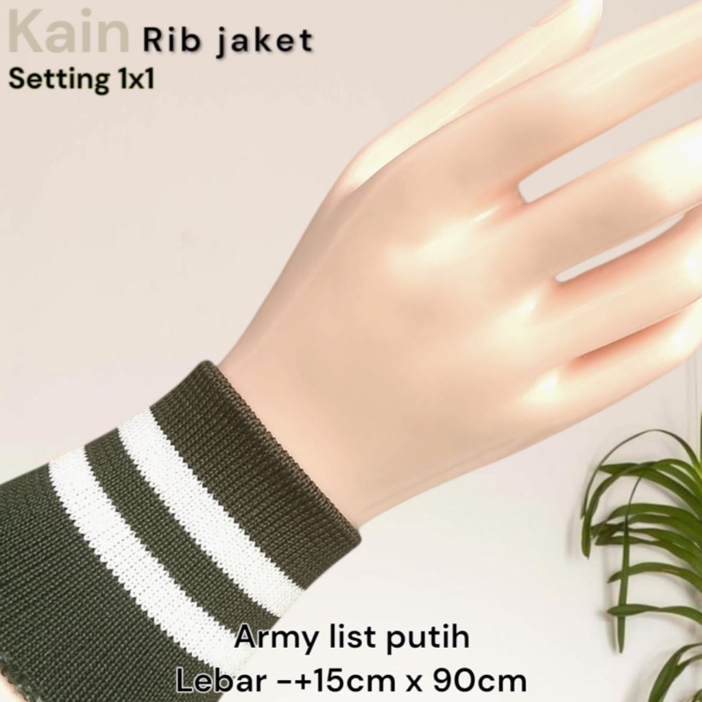 Kain Rib Jaket warna hijau Army 1x1 babat 2x2 polos dan strip Polyester premium perlembar
